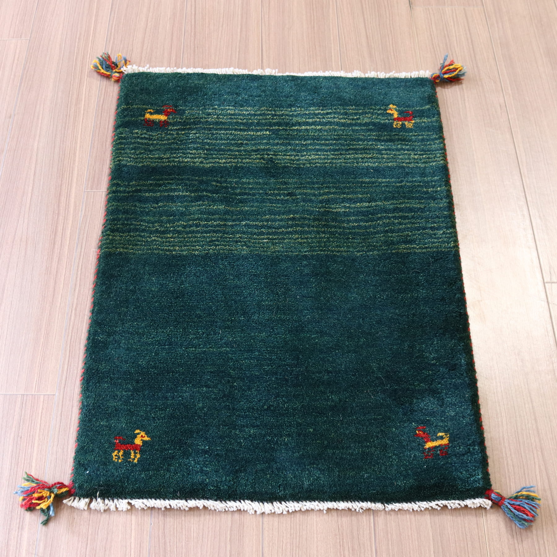 ギャベ イラン産手織り 88x62cm グリーングラデーション 玄関マット