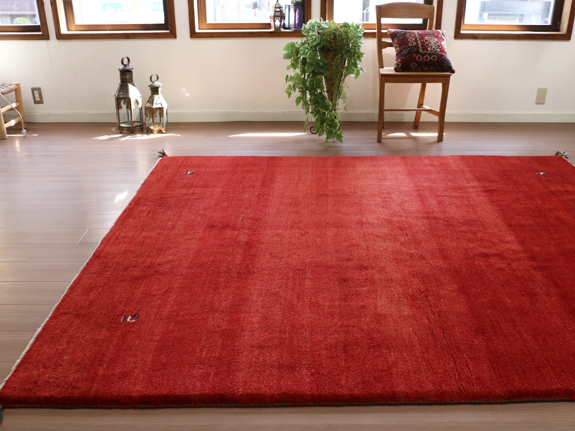 ギャッベ イラン産 手織り 237x202cm レッド グラデーション シンプル 無地
