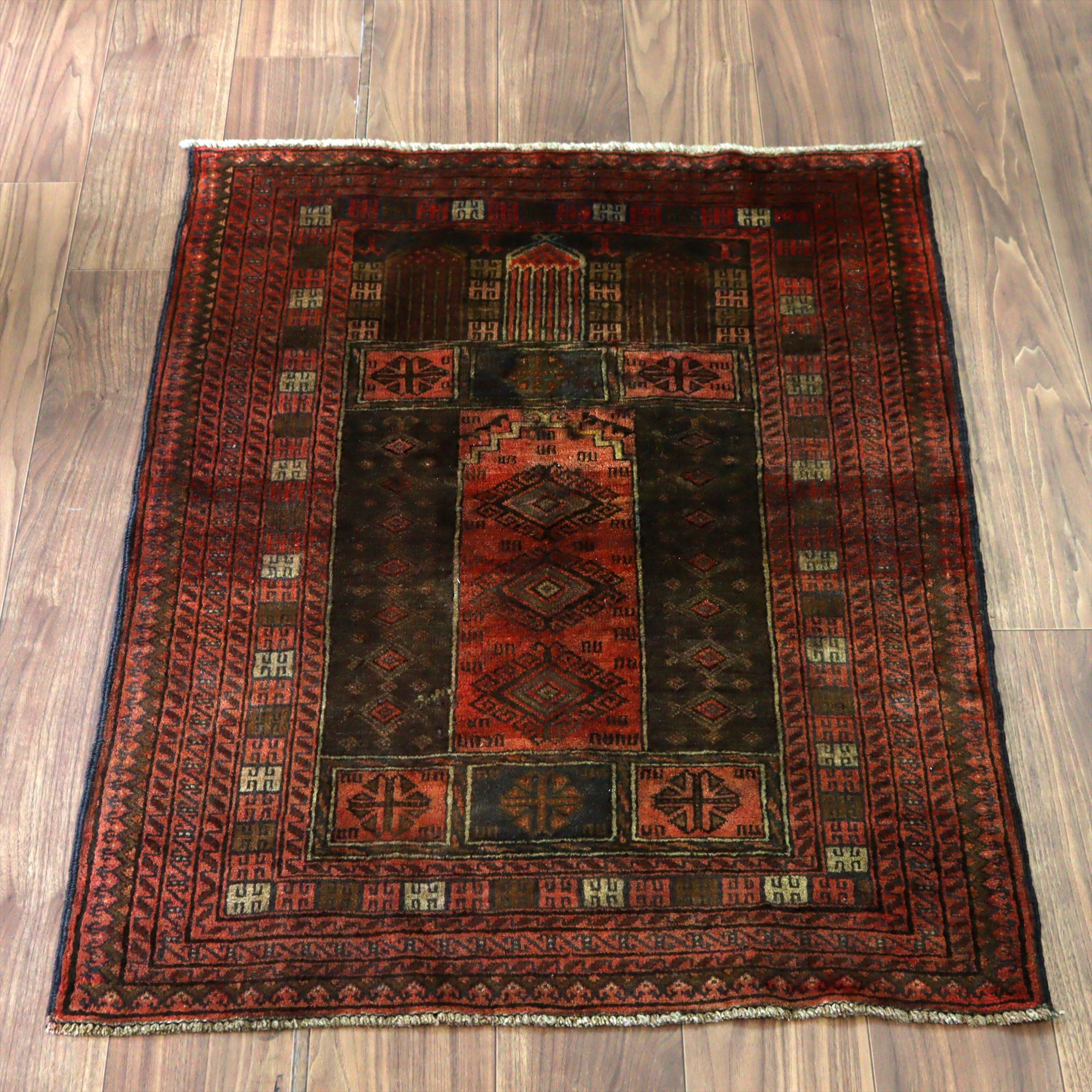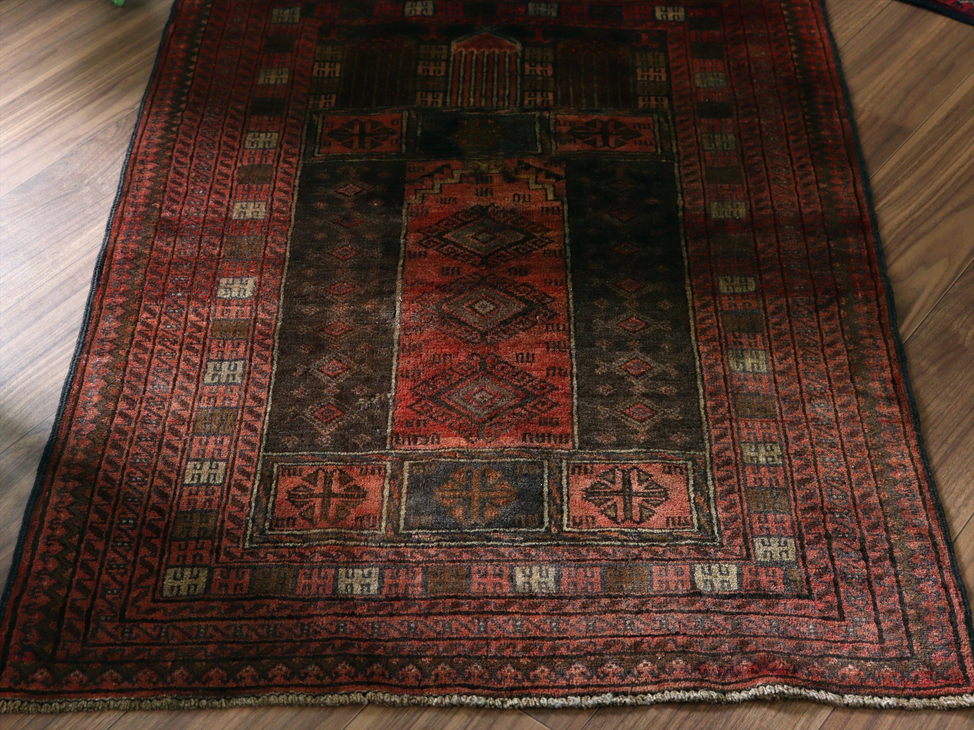 トライバルラグ バルーチ114×82cm ミフラープと幾何学模様