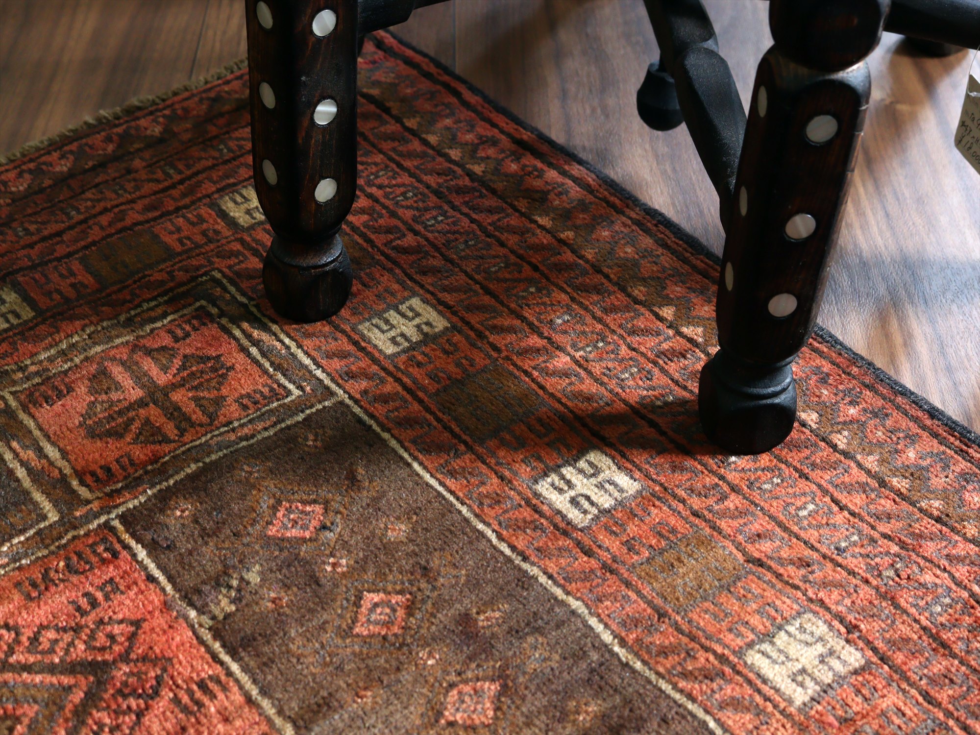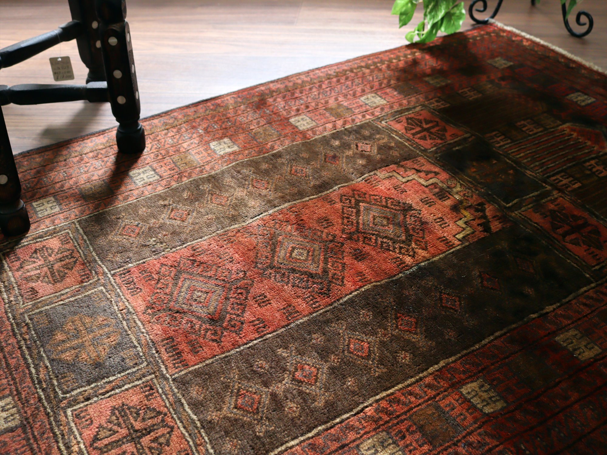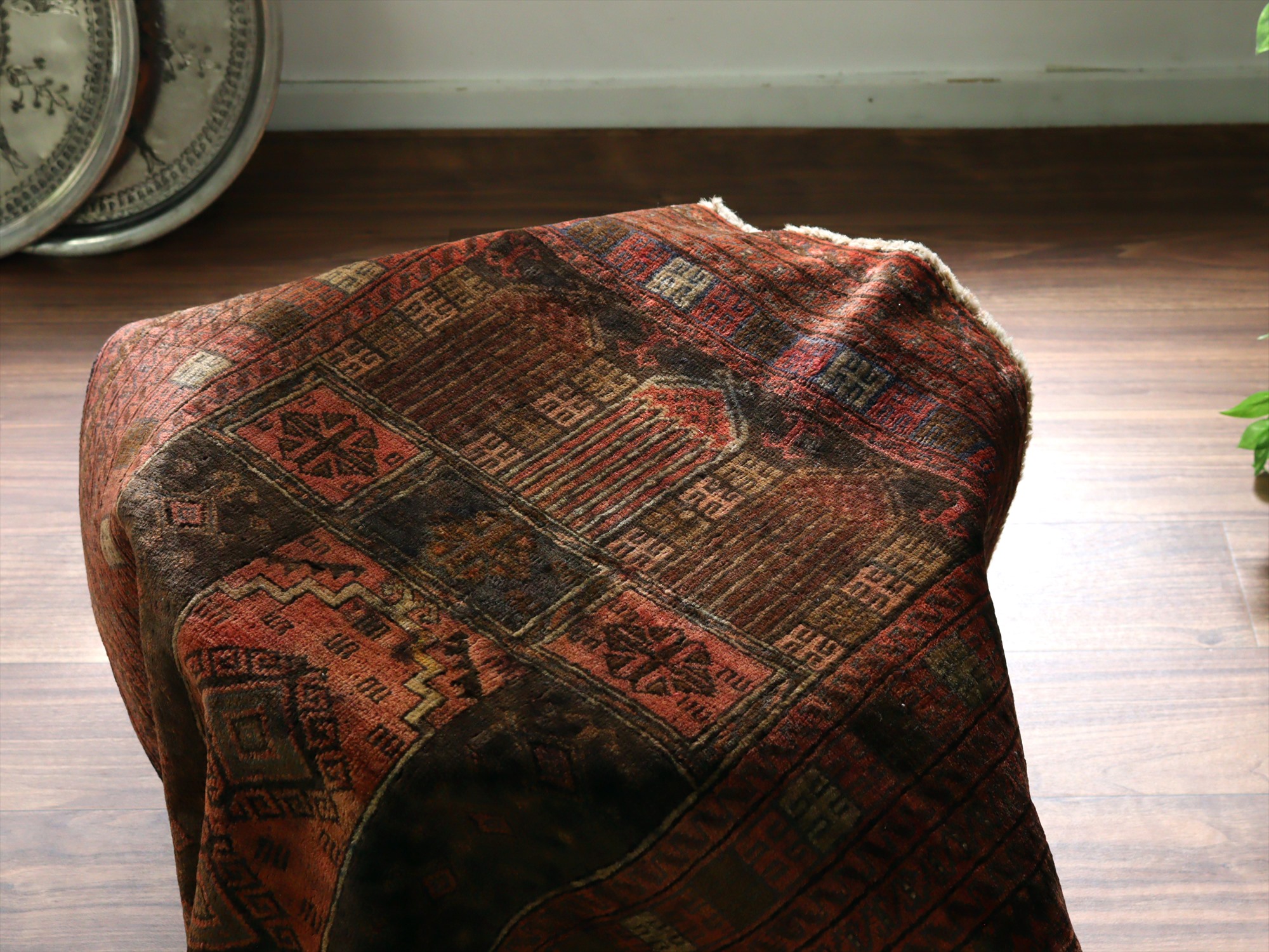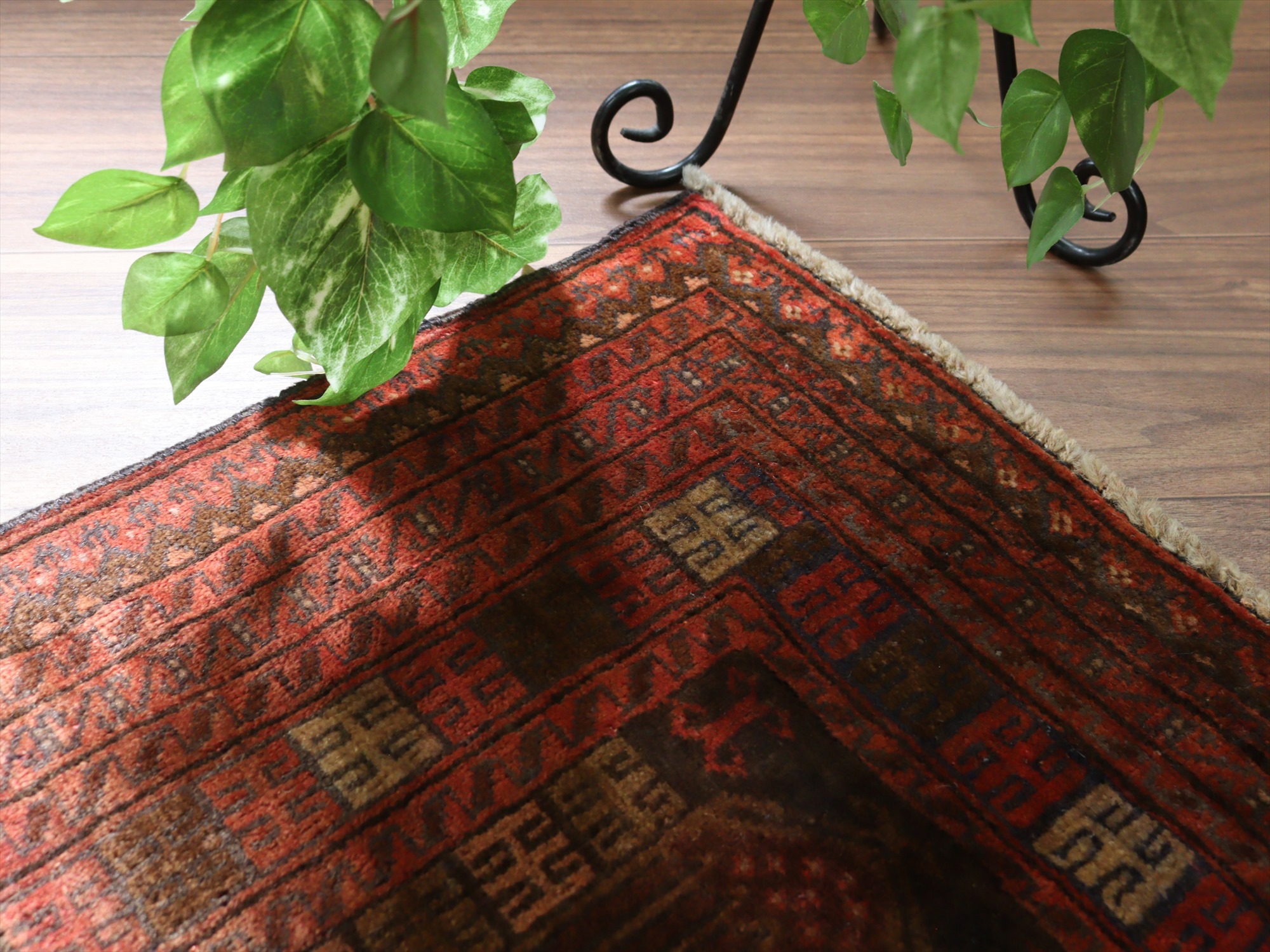 - トライバルラグ バルーチ114×82cm ミフラープと幾何学模様