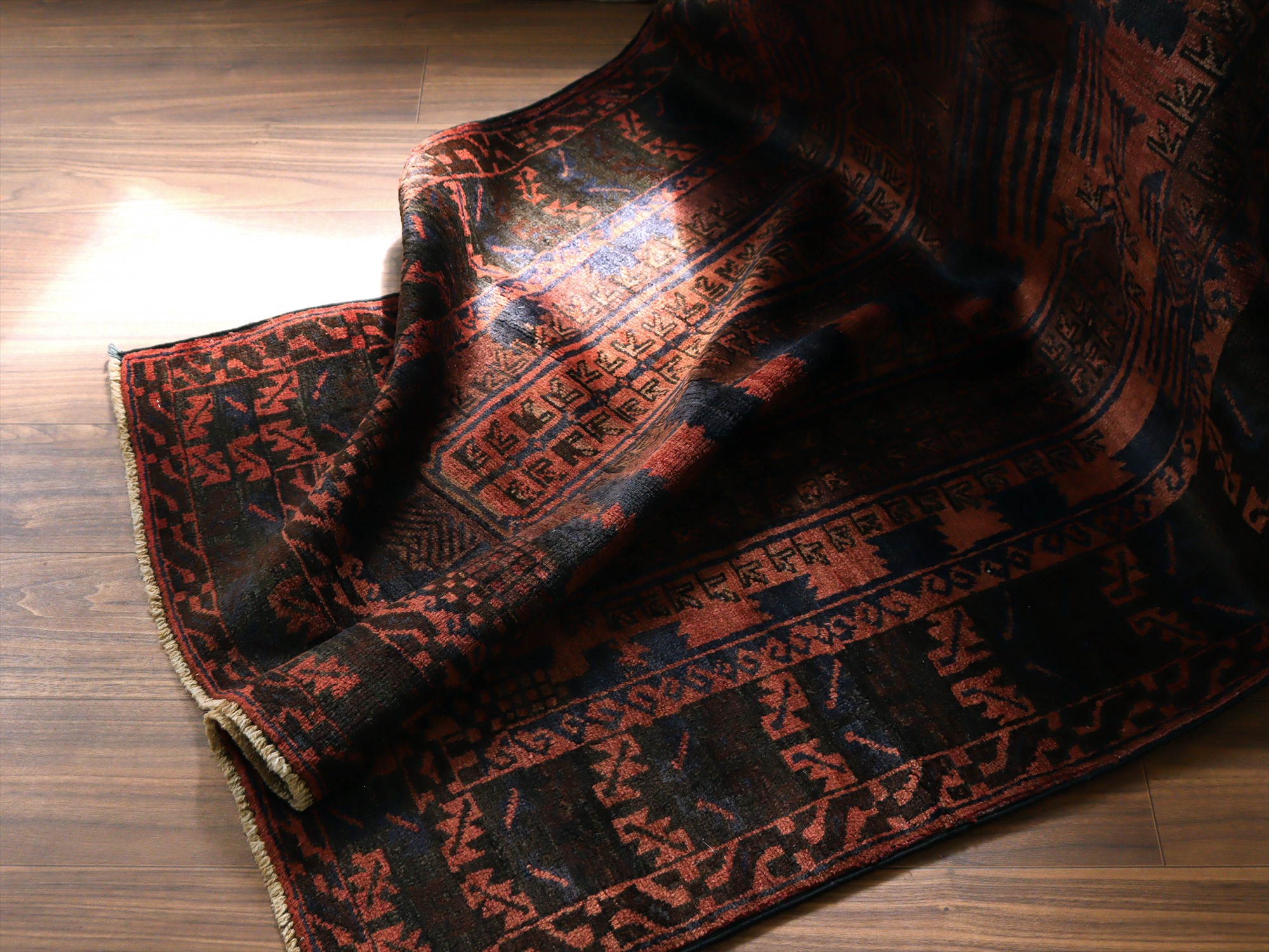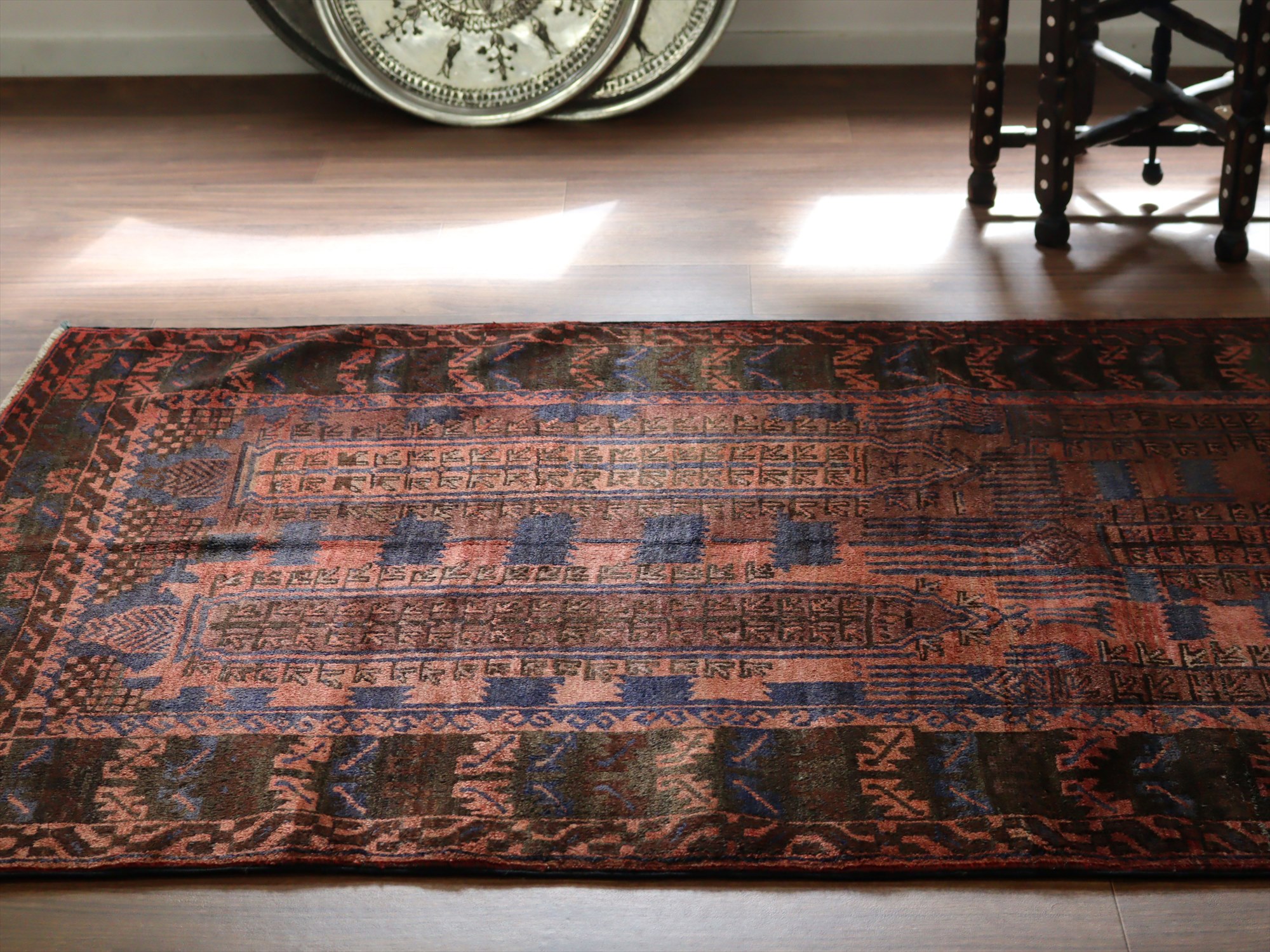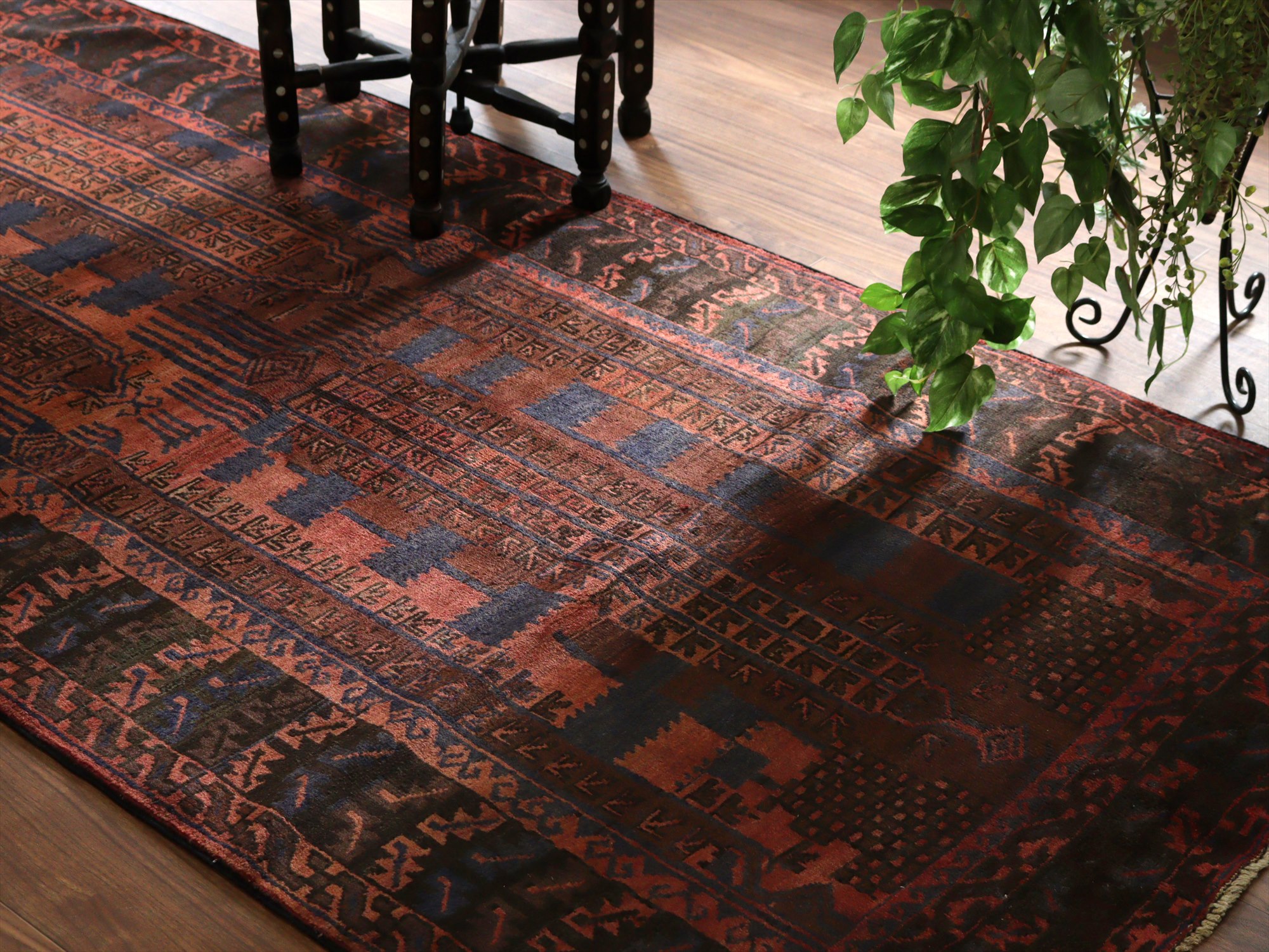 トライバルラグ バルーチ220×105cm 幾何学デザイン 手織り絨毯