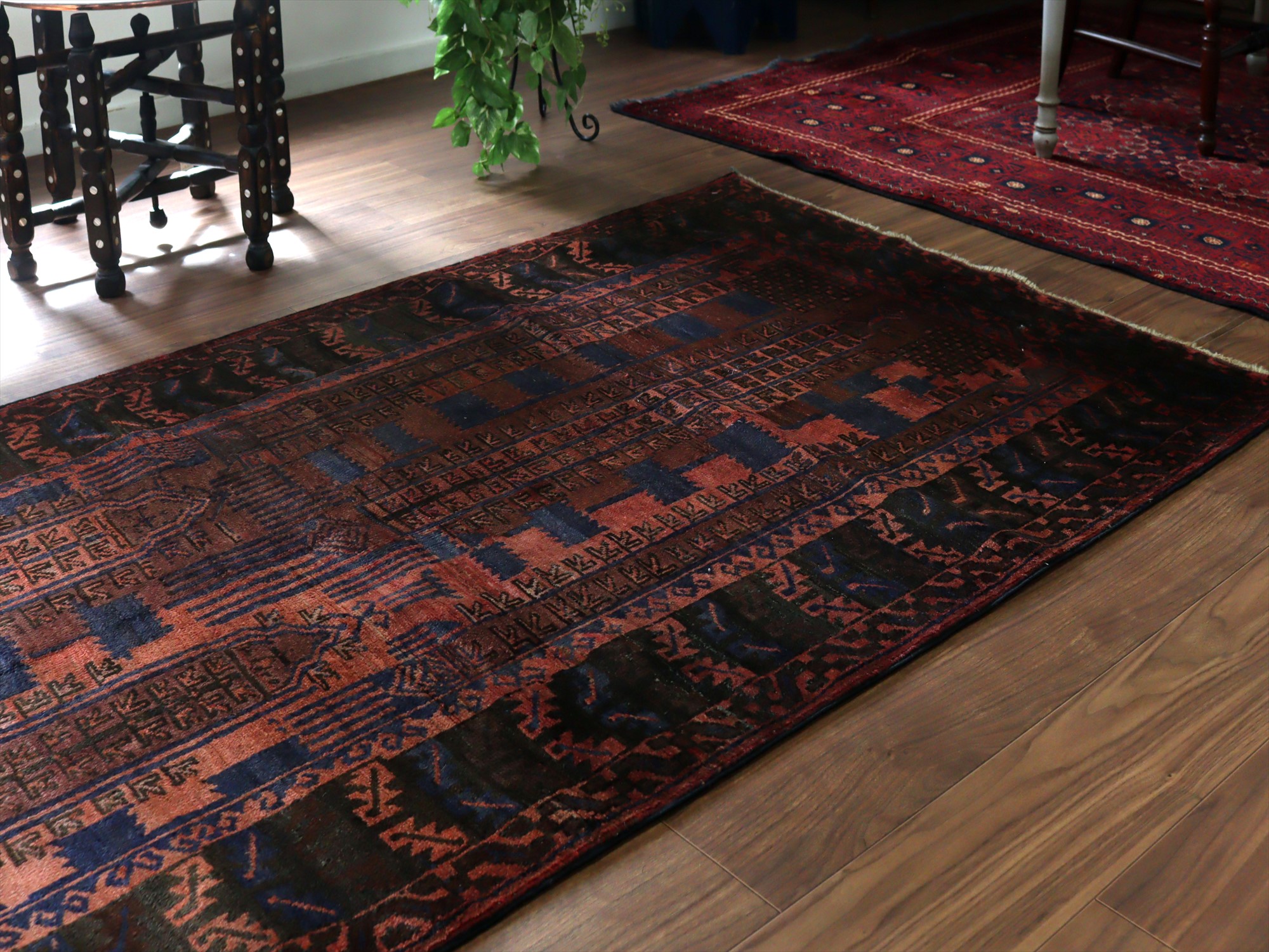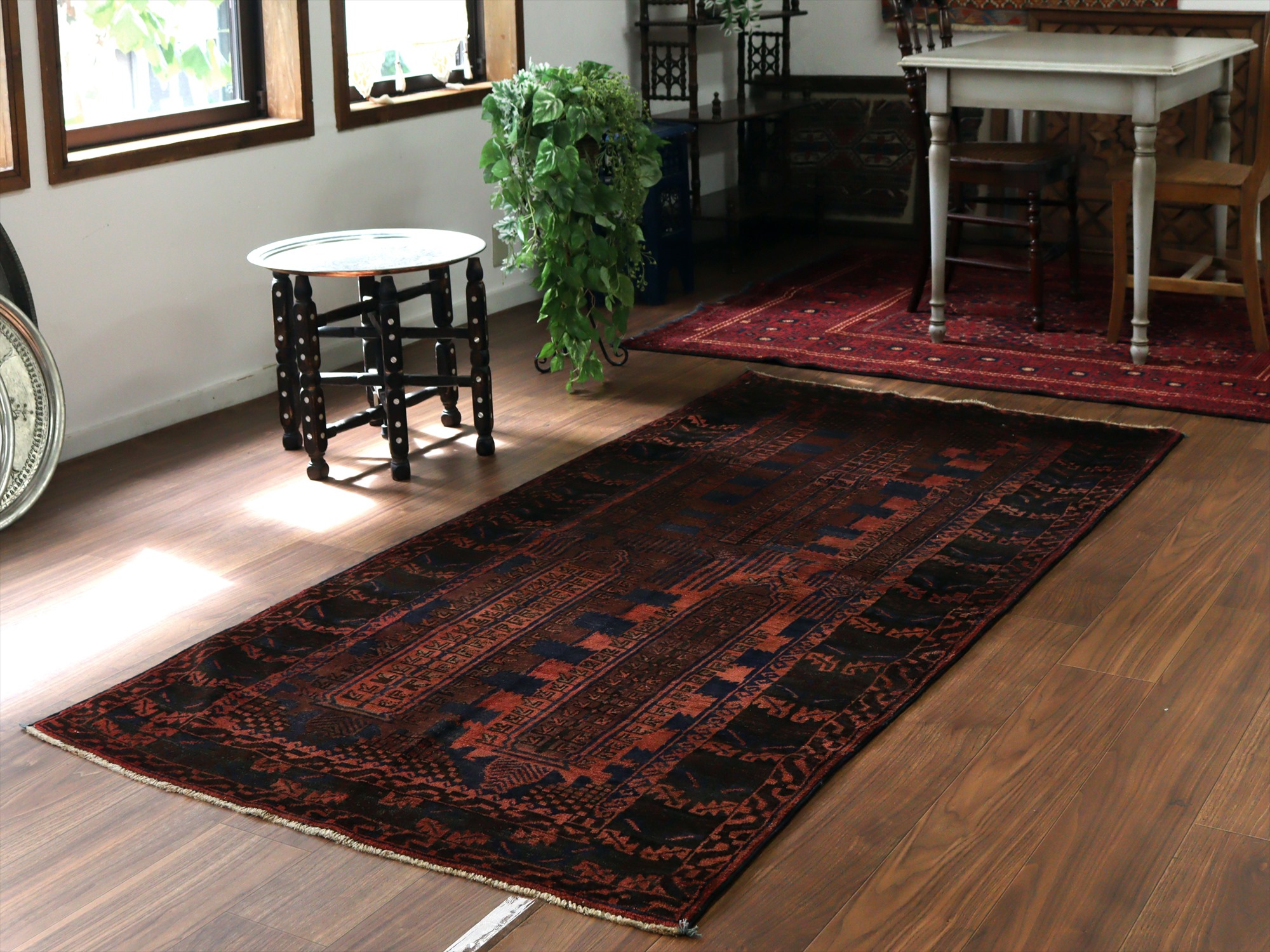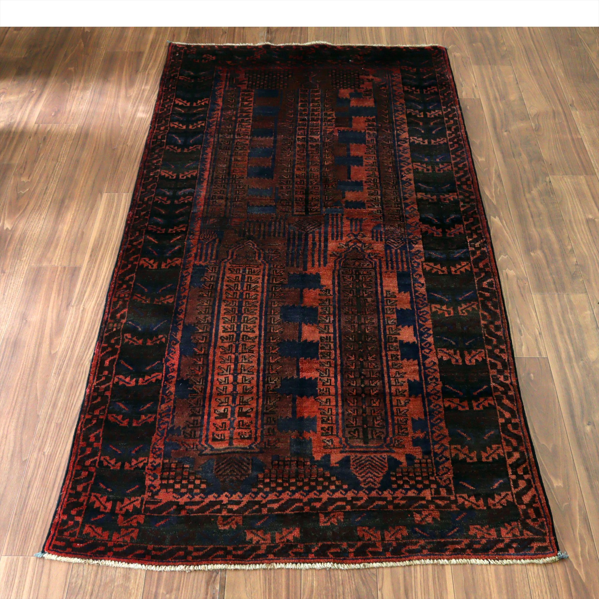 トライバルラグ バルーチ220×105cm 幾何学デザイン 手織り絨毯