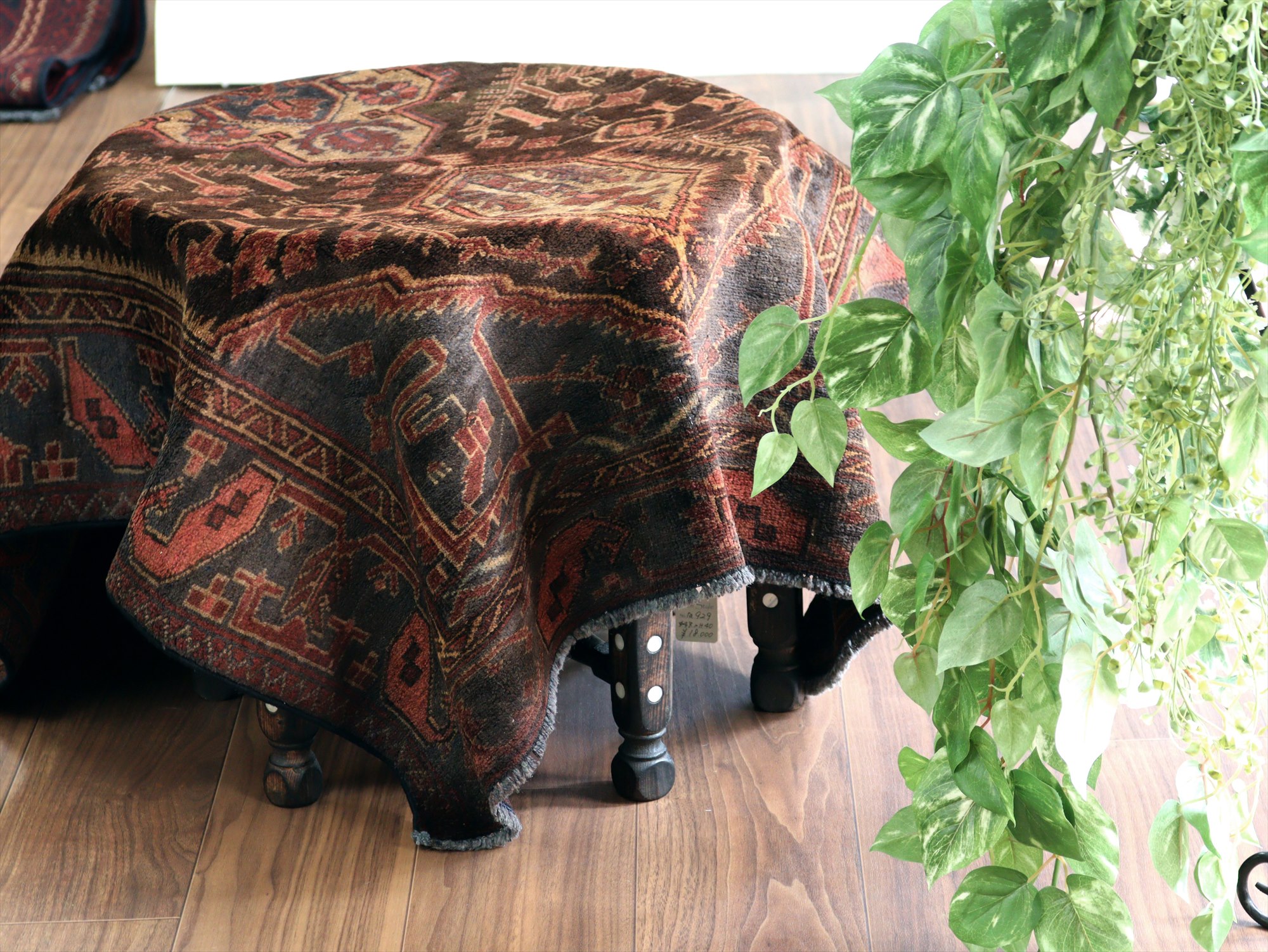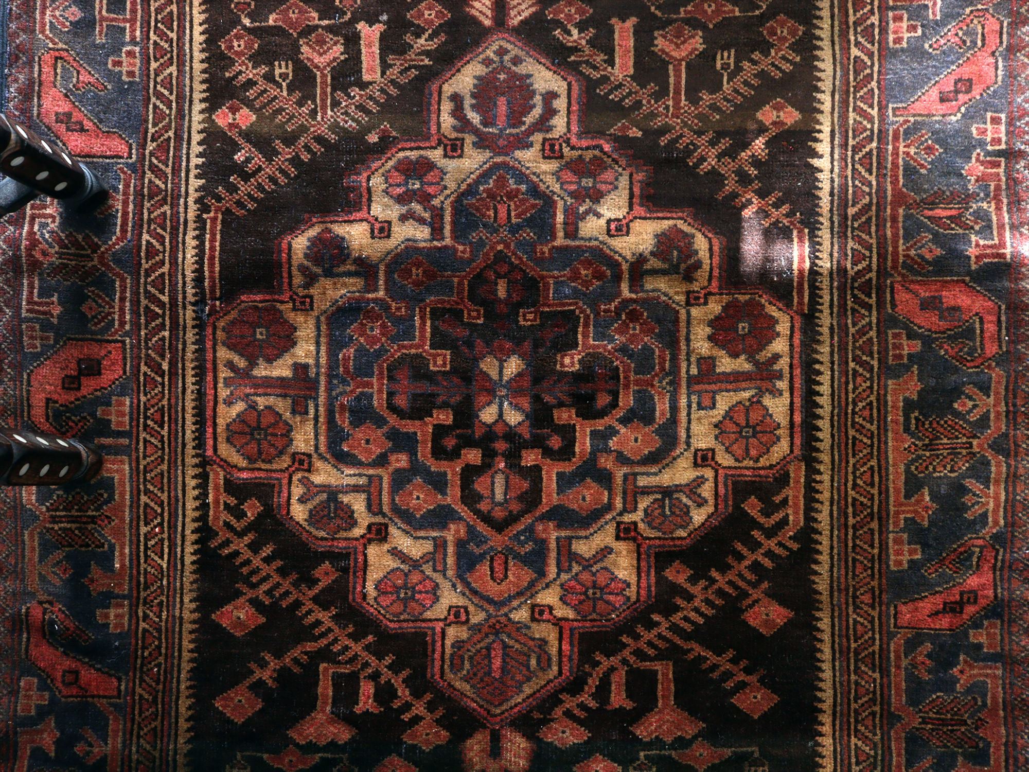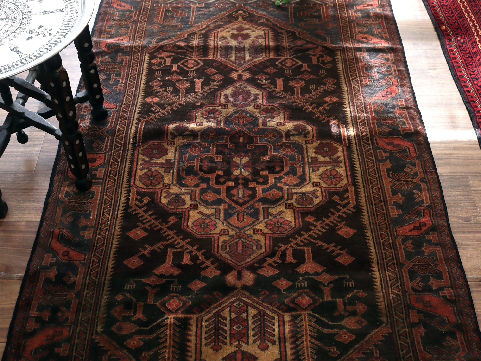 トライバルラグ バルーチ168×97cm 小花とメダリオン ダークブラウン