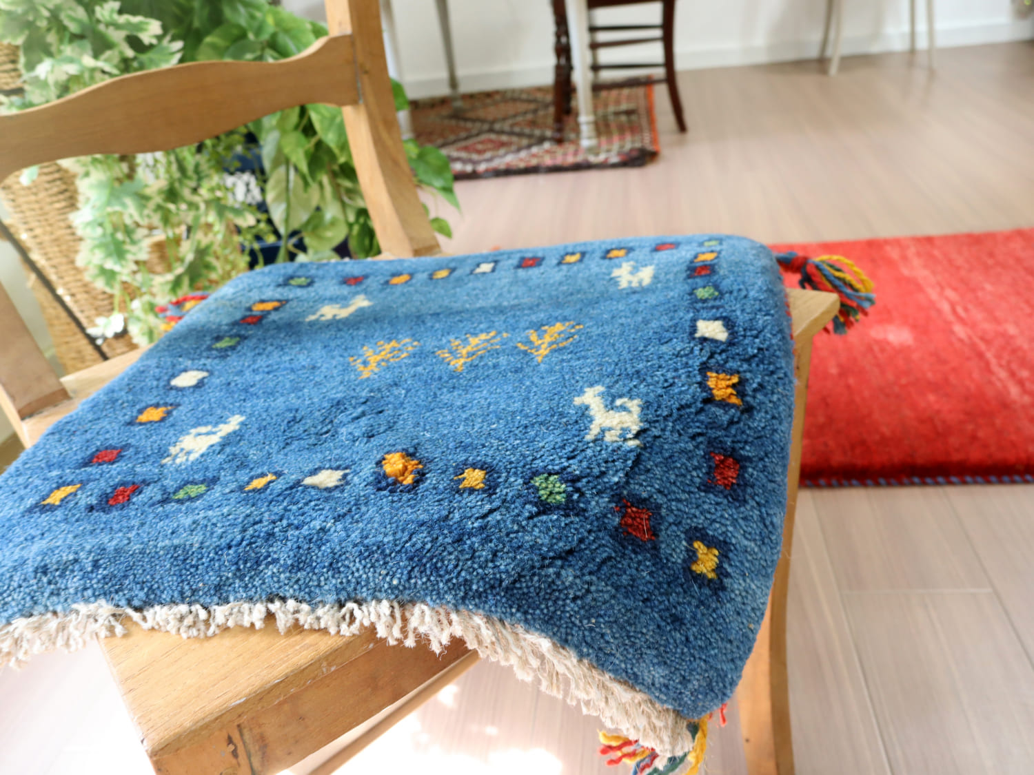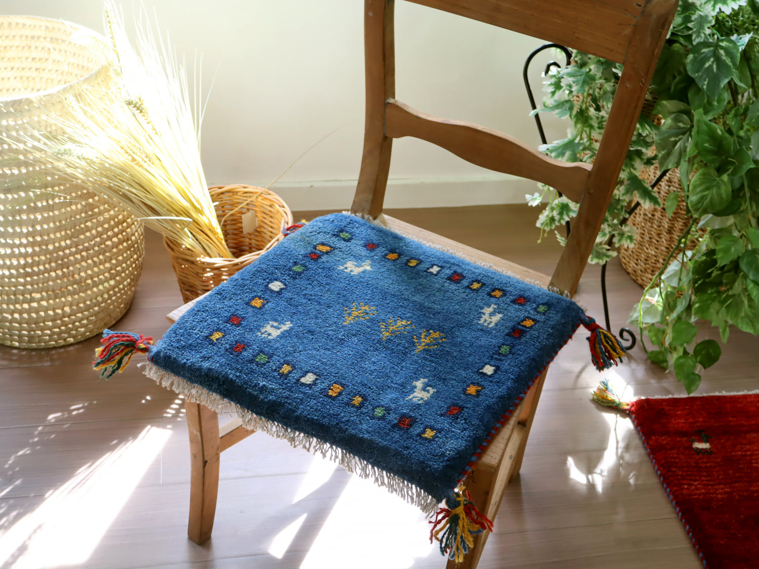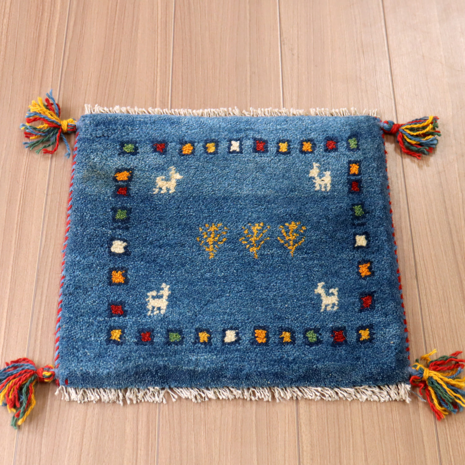 ギャッベ 座布団サイズ 39x40cm ブルー イラン産手織りギャッベ