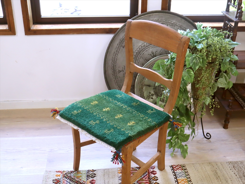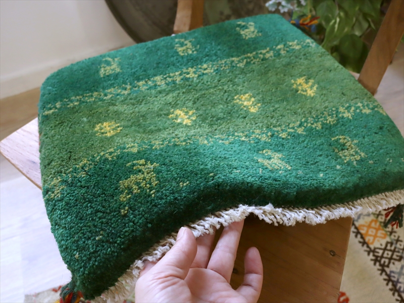 ギャッベ イラン産手織り 座布団サイズ 37x42cm グリーン