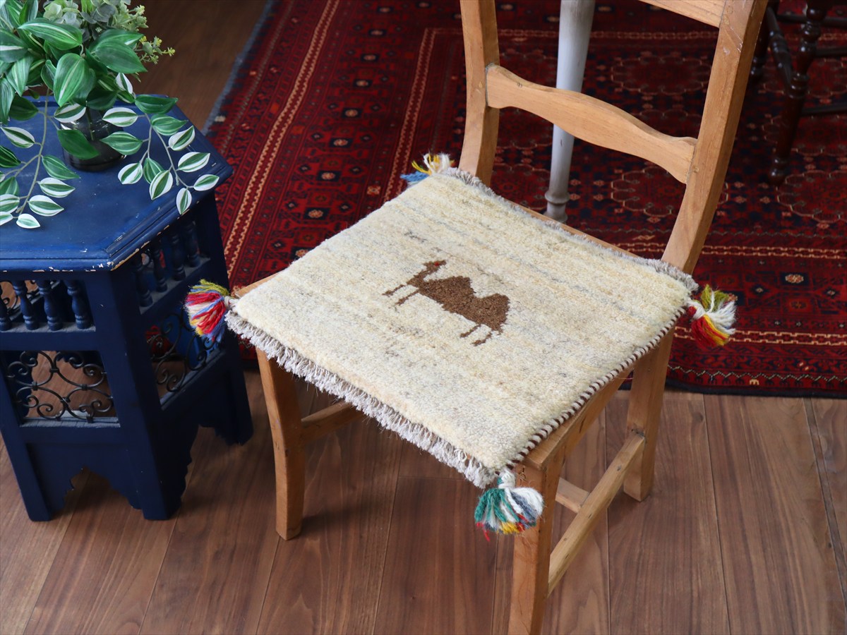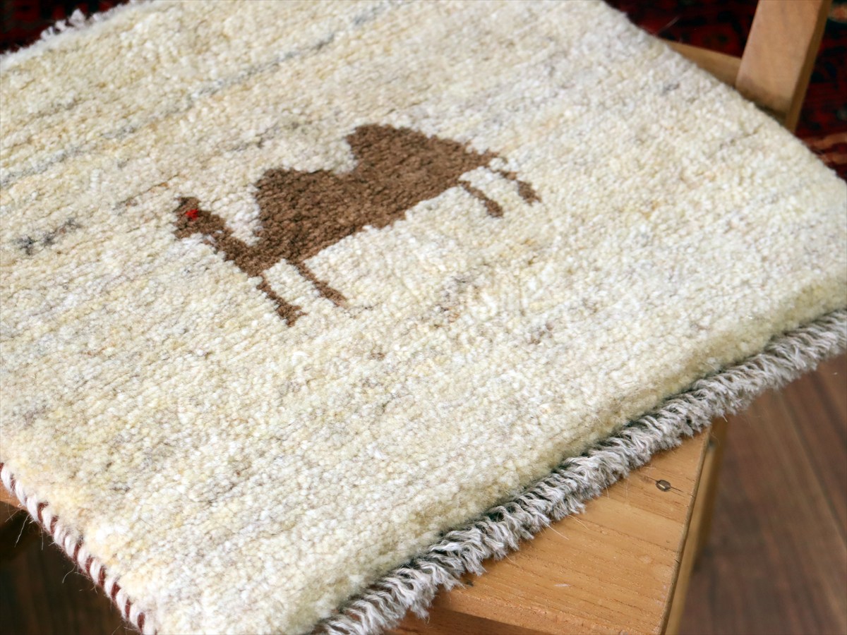 ギャッベ イラン産手織り 座布団サイズ36×40cm ナチュラルアイボリー ラクダ