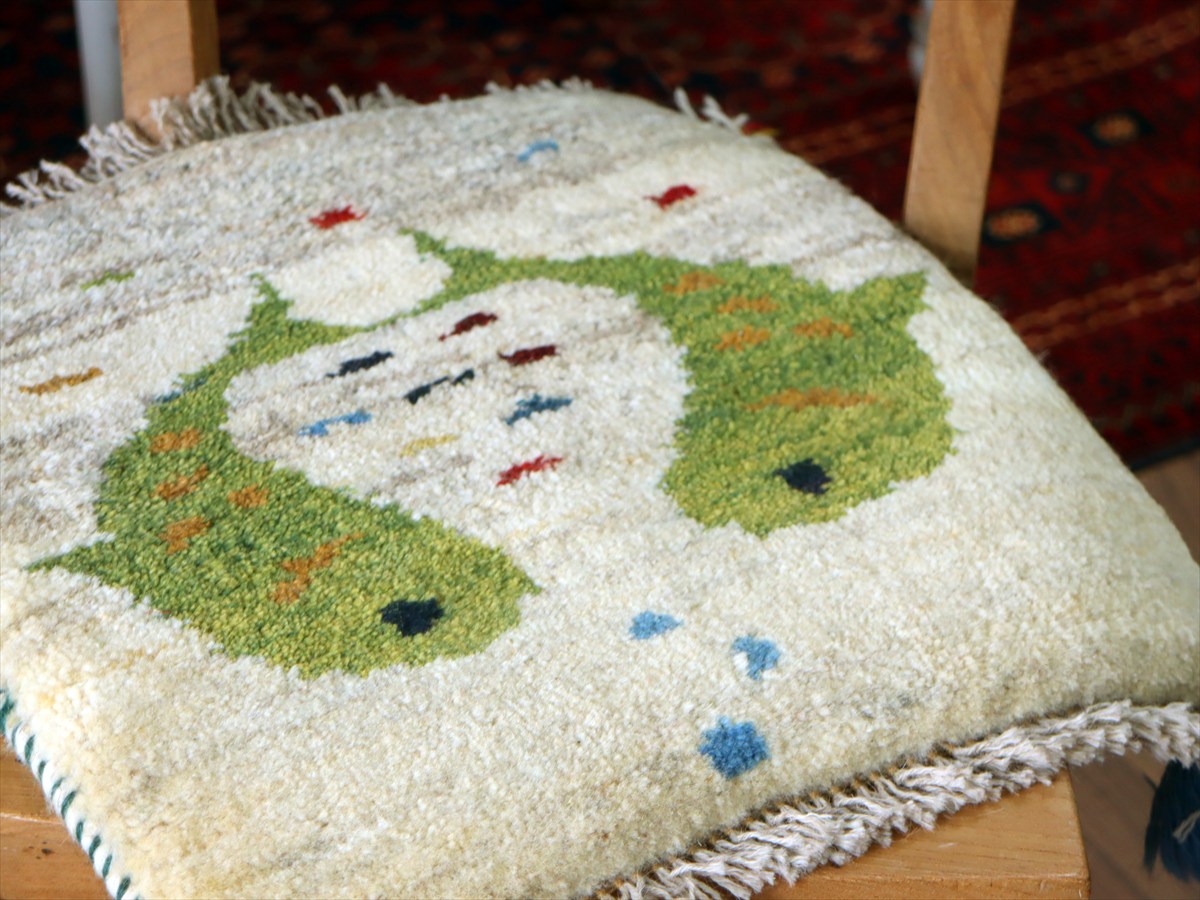 - ギャッベ イラン産手織り 座布団サイズ43×40cm ナチュラルアイボリー 向かい合うサメ