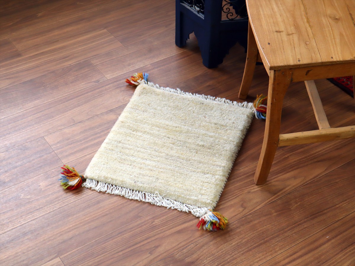 - ギャッベ イラン産手織り 座布団サイズ44×39cm ナチュラルアイボリーグラデーション