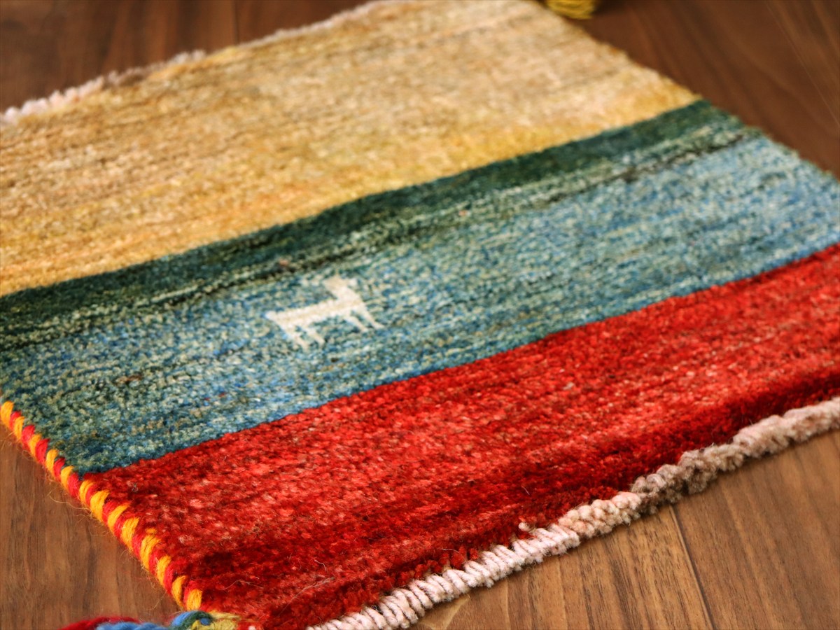 ギャッベ イラン産手織り 座布団サイズ40×42cm カラフルボーダー 動物モチーフ