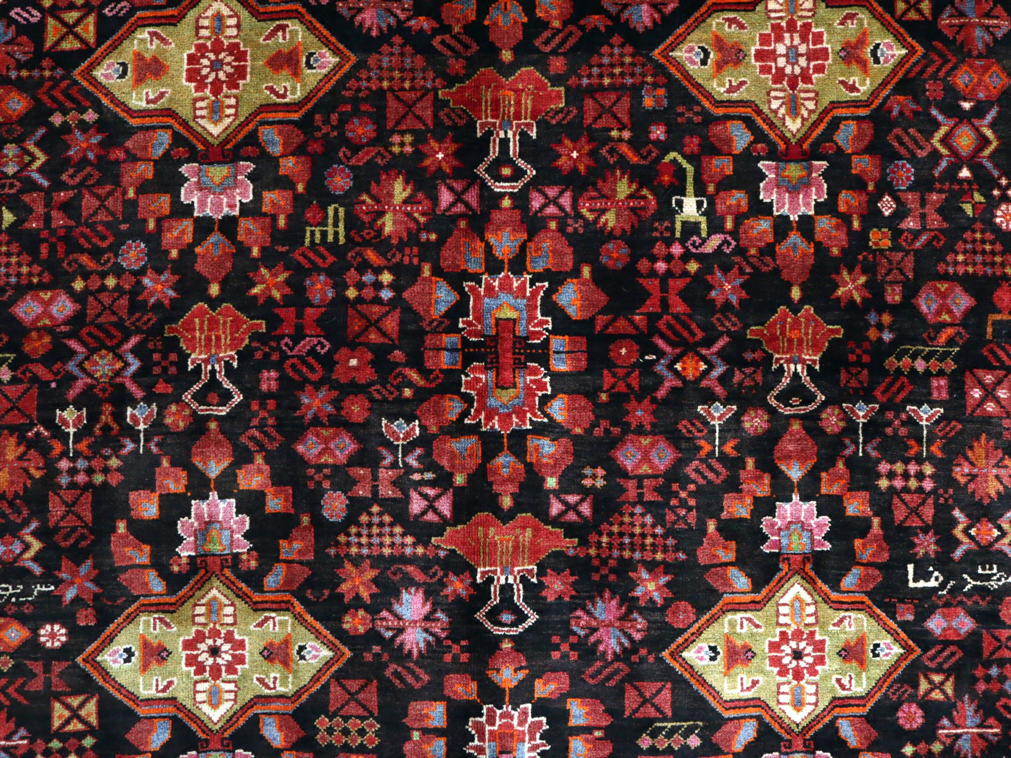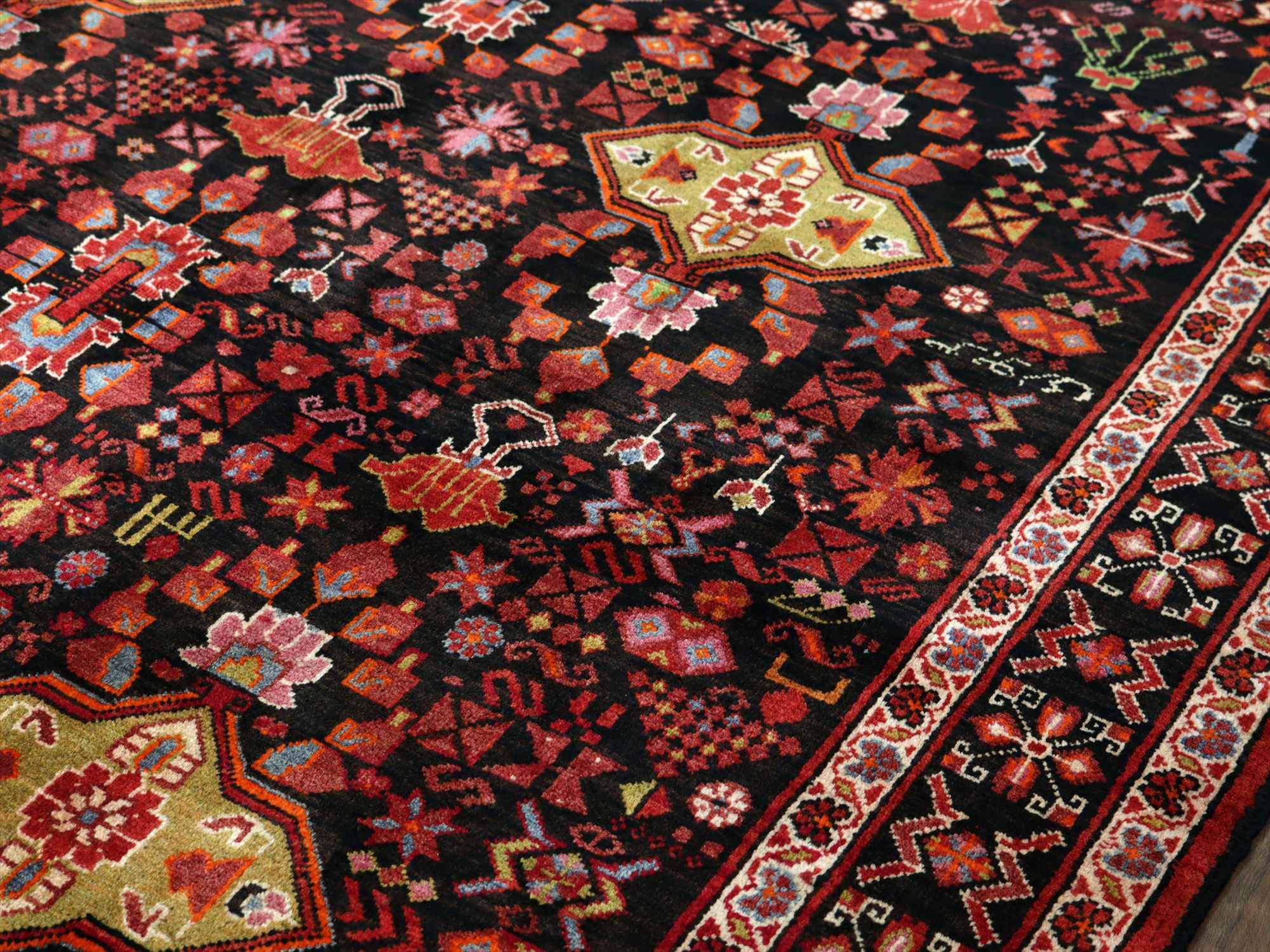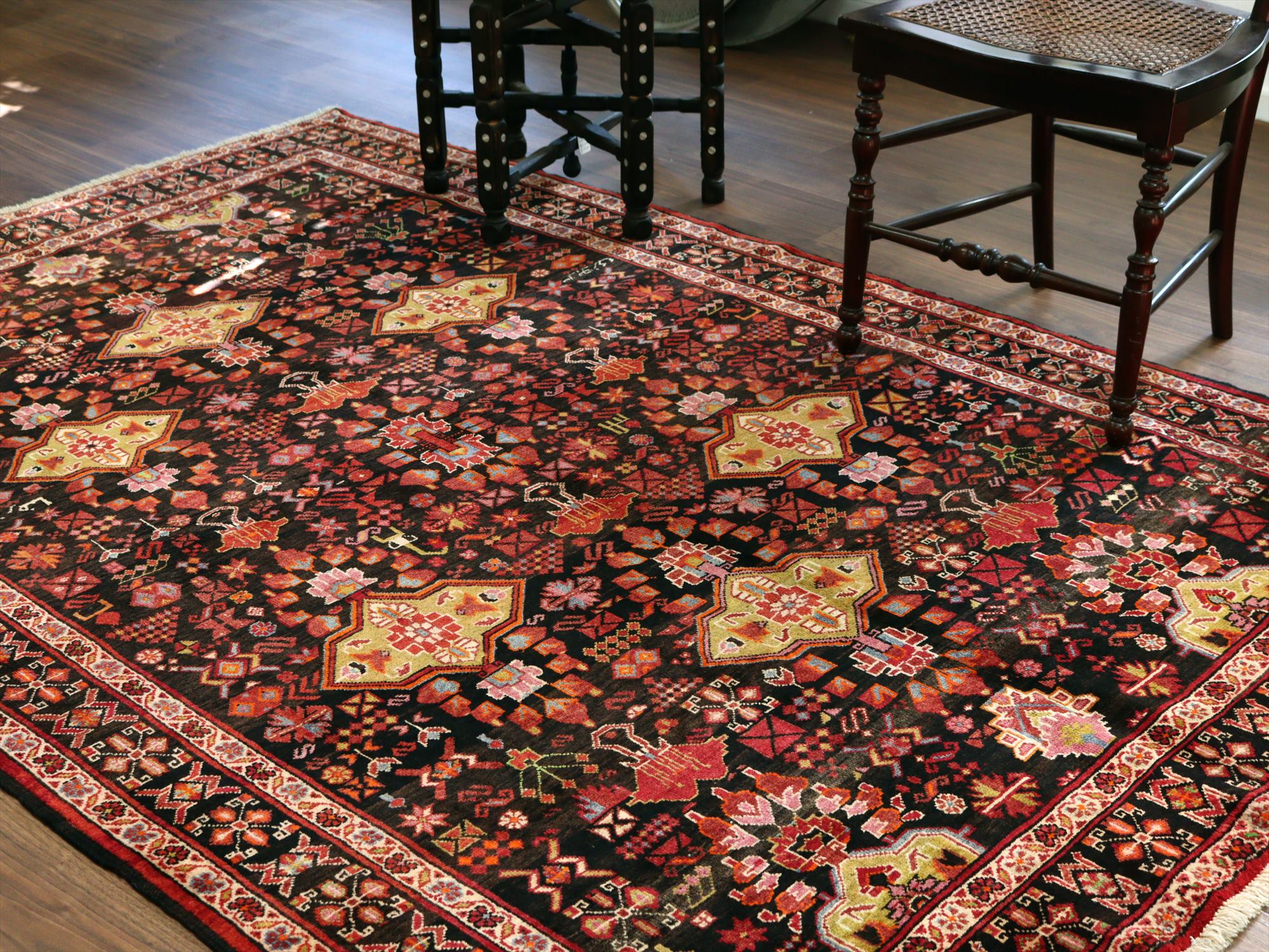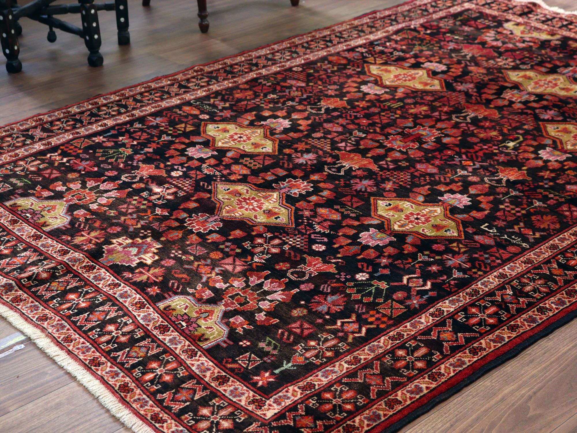 イランの手織り絨毯 バルーチ219×145cm 小花と幾何学模様 トライバルラグ