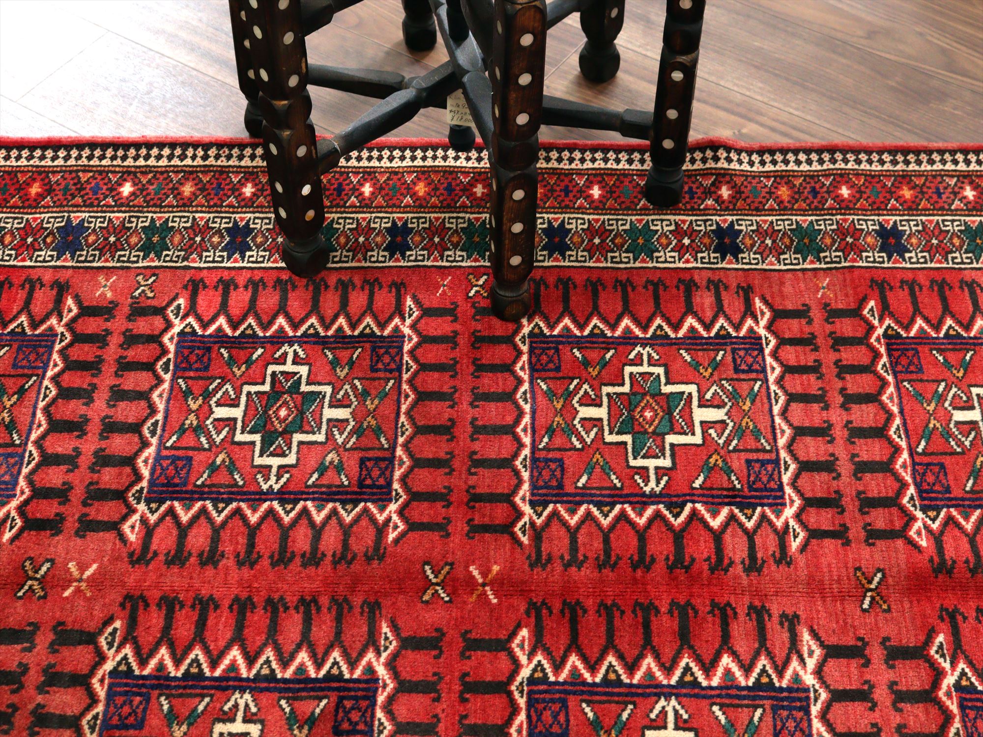 イランの手織りラグ トルクメン291×111cm 細長いサイズ 幾何学模様