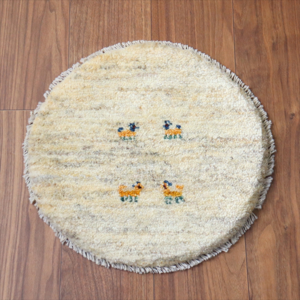 ギャッベ 円形座布団サイズ φ42cm ナチュラルアイボリー ベージュ