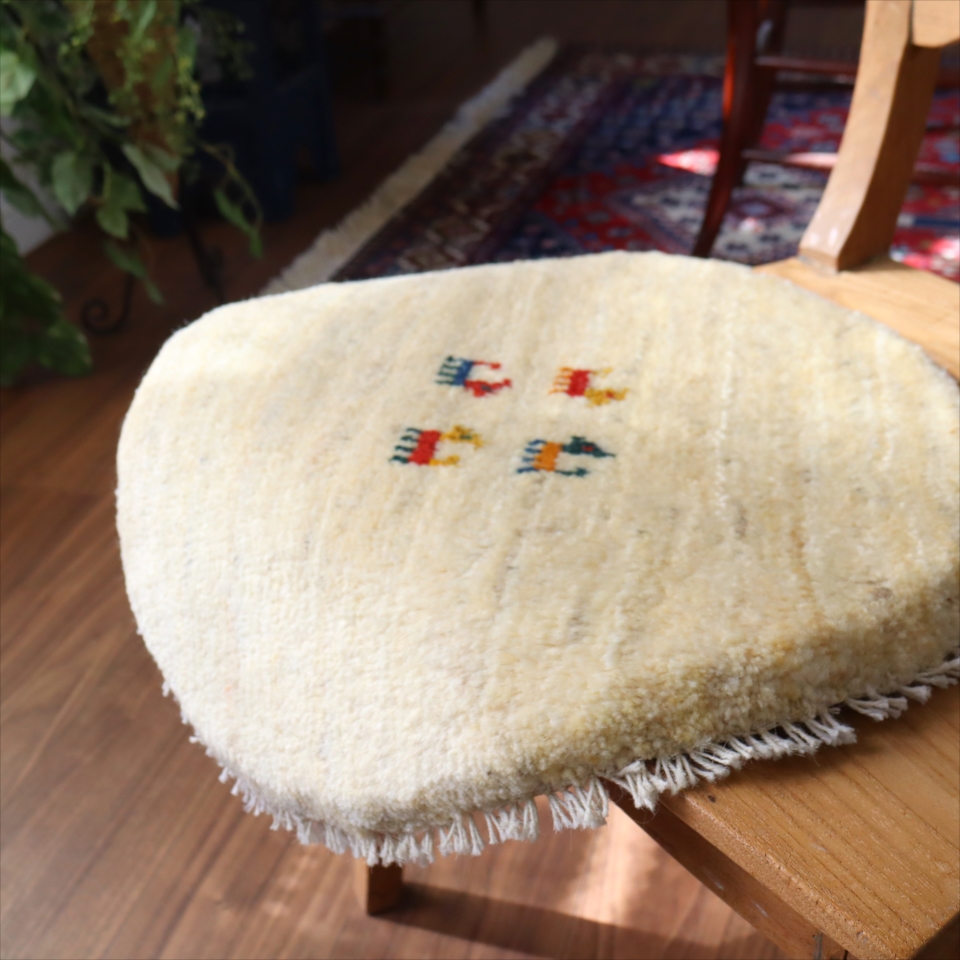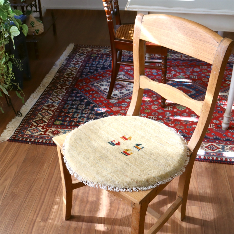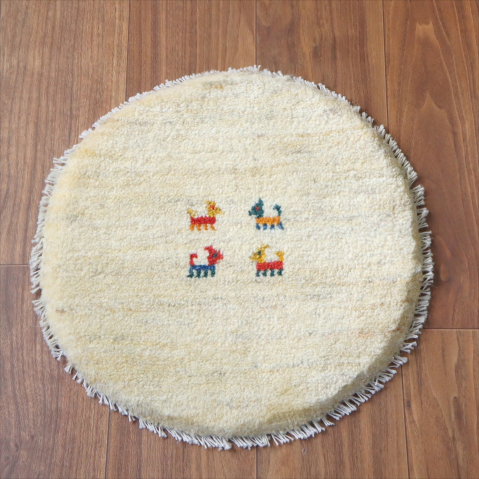 ギャッベ 円形座布団サイズ φ43cm ナチュラルアイボリー ベージュ
