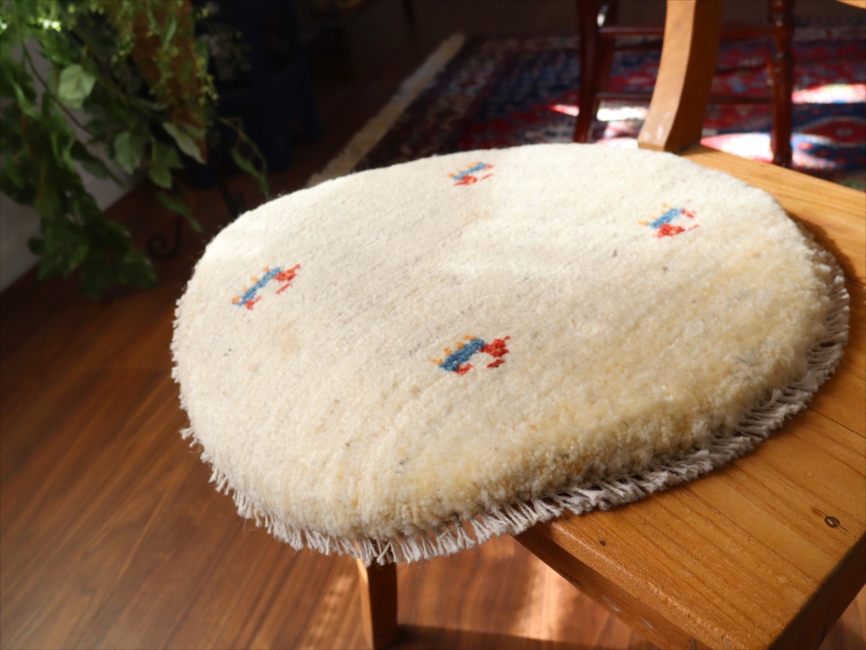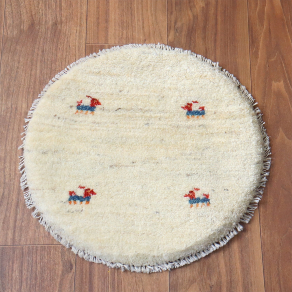 ギャッベ 円形座布団サイズ φ41cm ナチュラルアイボリー ベージュ