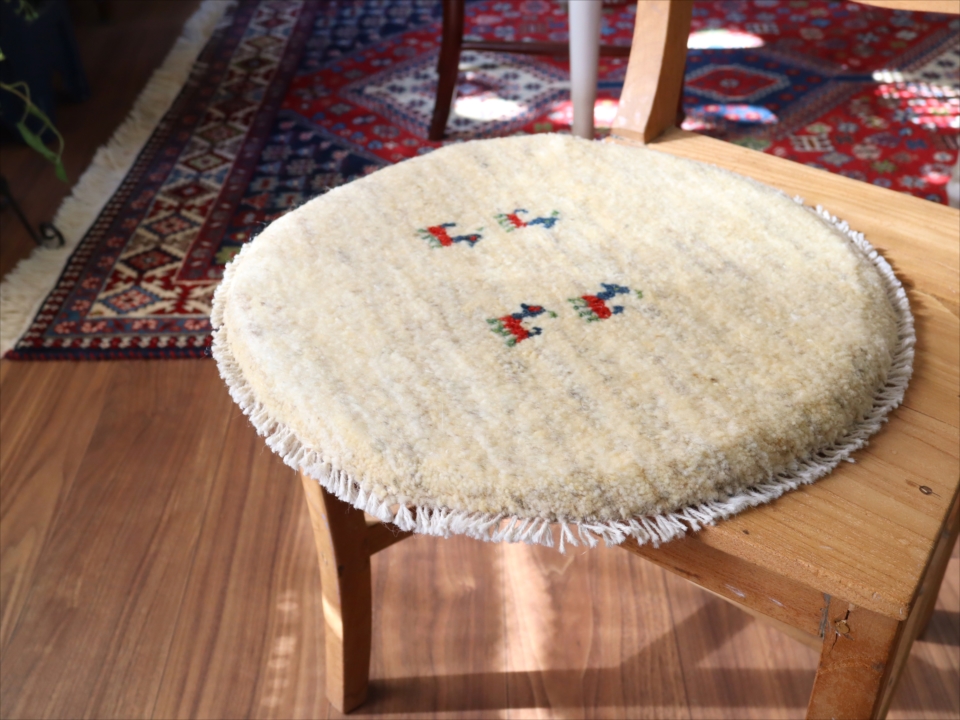ギャッベ 円形座布団サイズ φ41cm ナチュラルアイボリー ベージュ