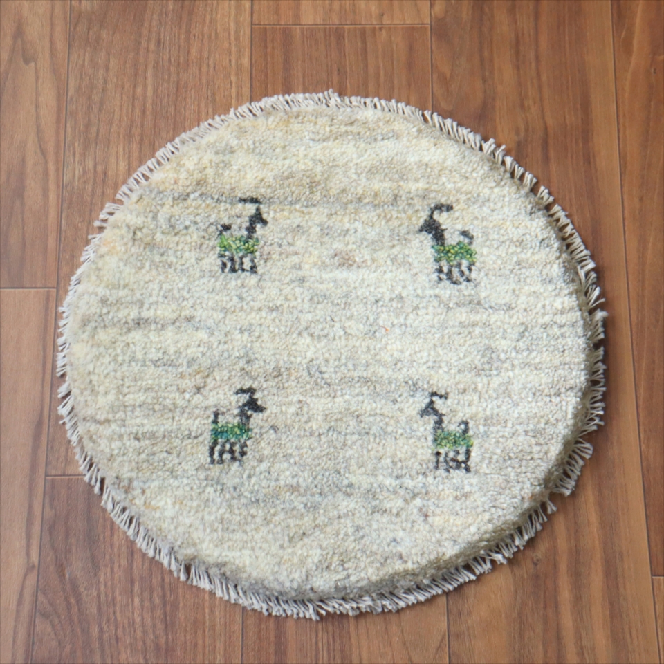 ギャッベ 円形座布団サイズ φ41cm ナチュラルアイボリー ベージュ