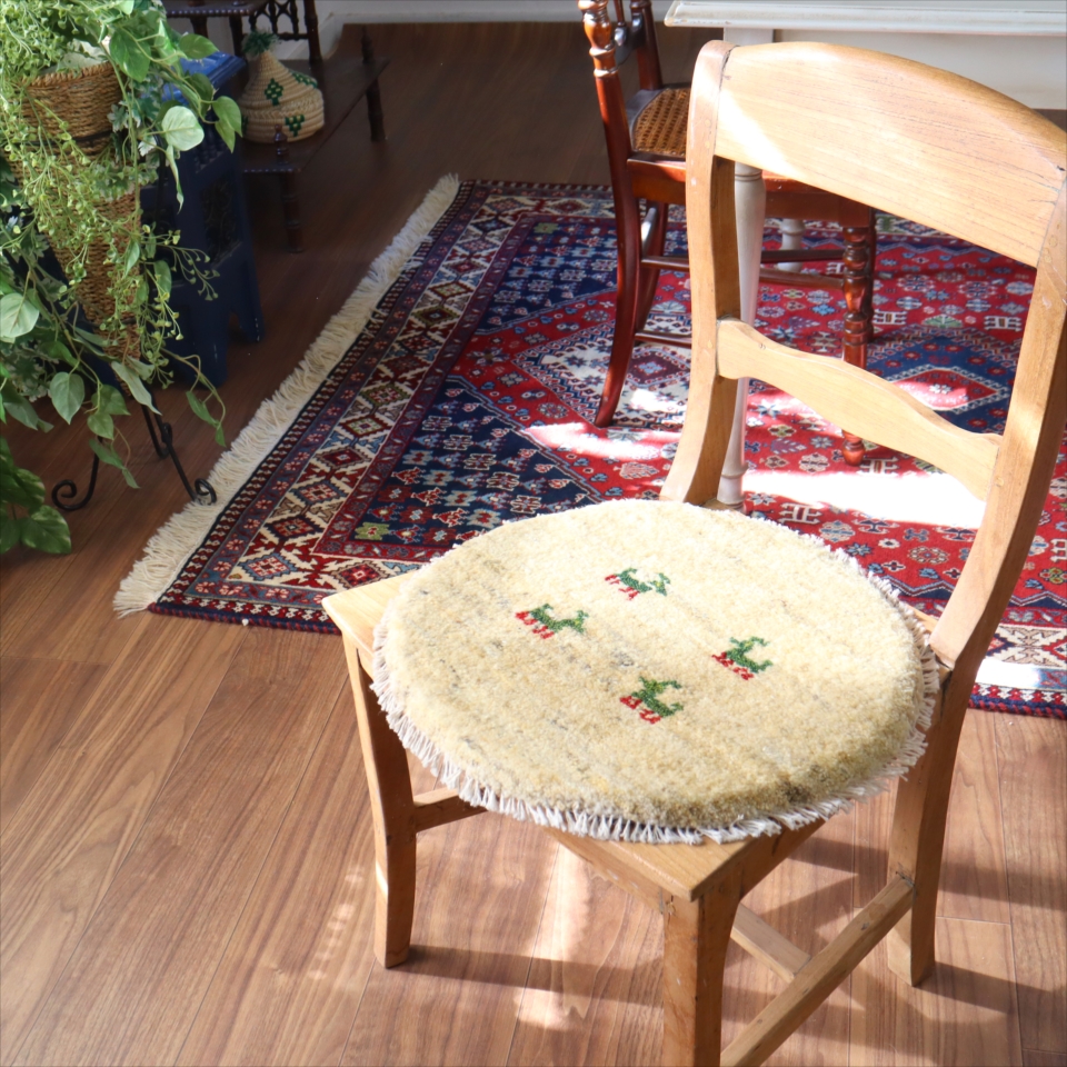 ギャッベ 円形座布団サイズ φ42cm ナチュラルアイボリー ベージュ