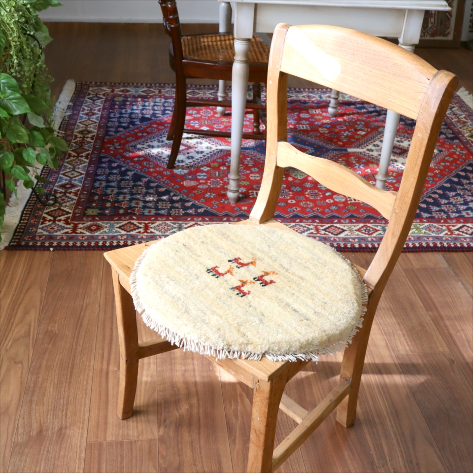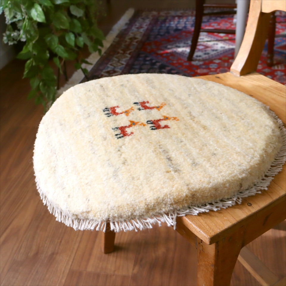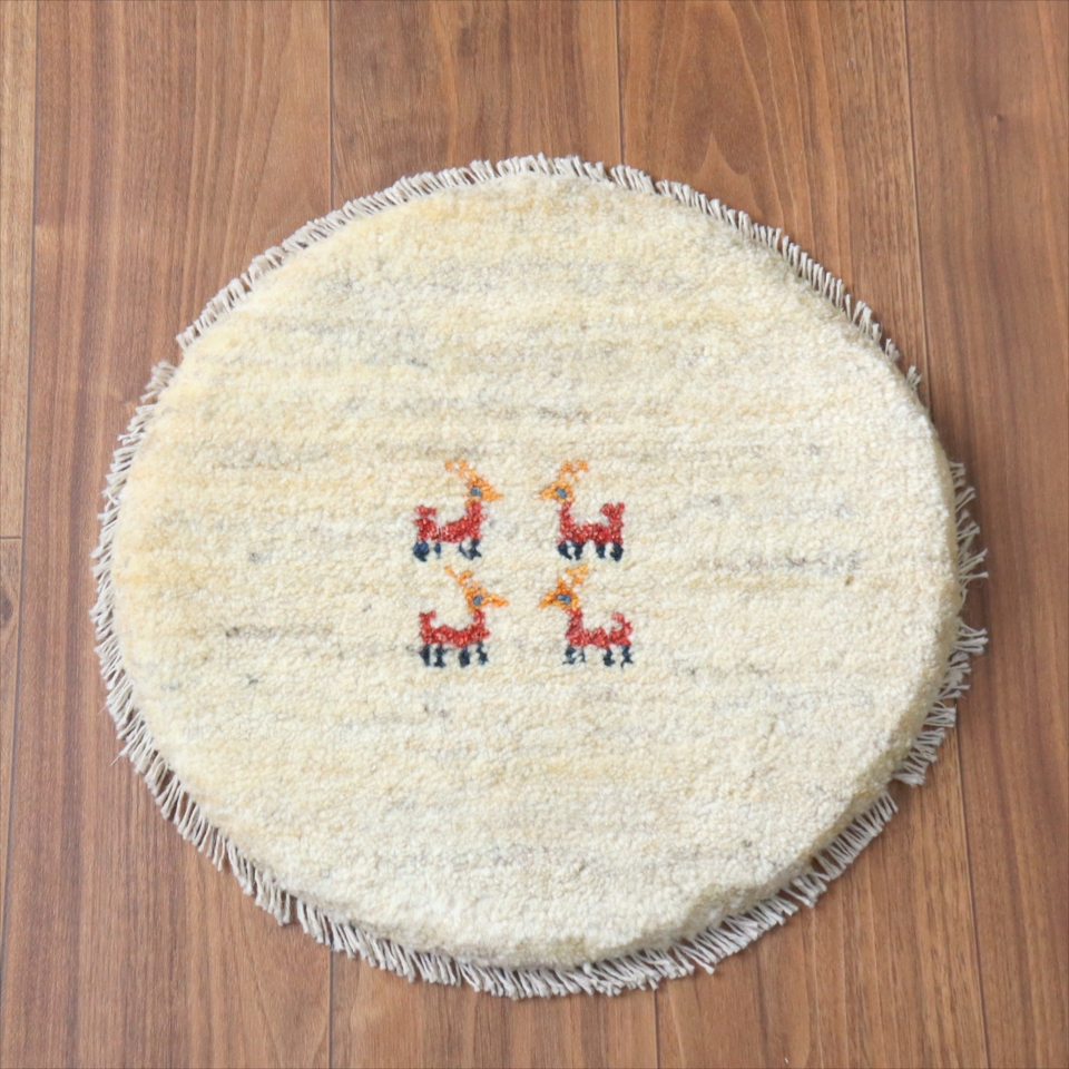 ギャッベ 円形座布団サイズ φ41cm ナチュラルアイボリー ベージュ