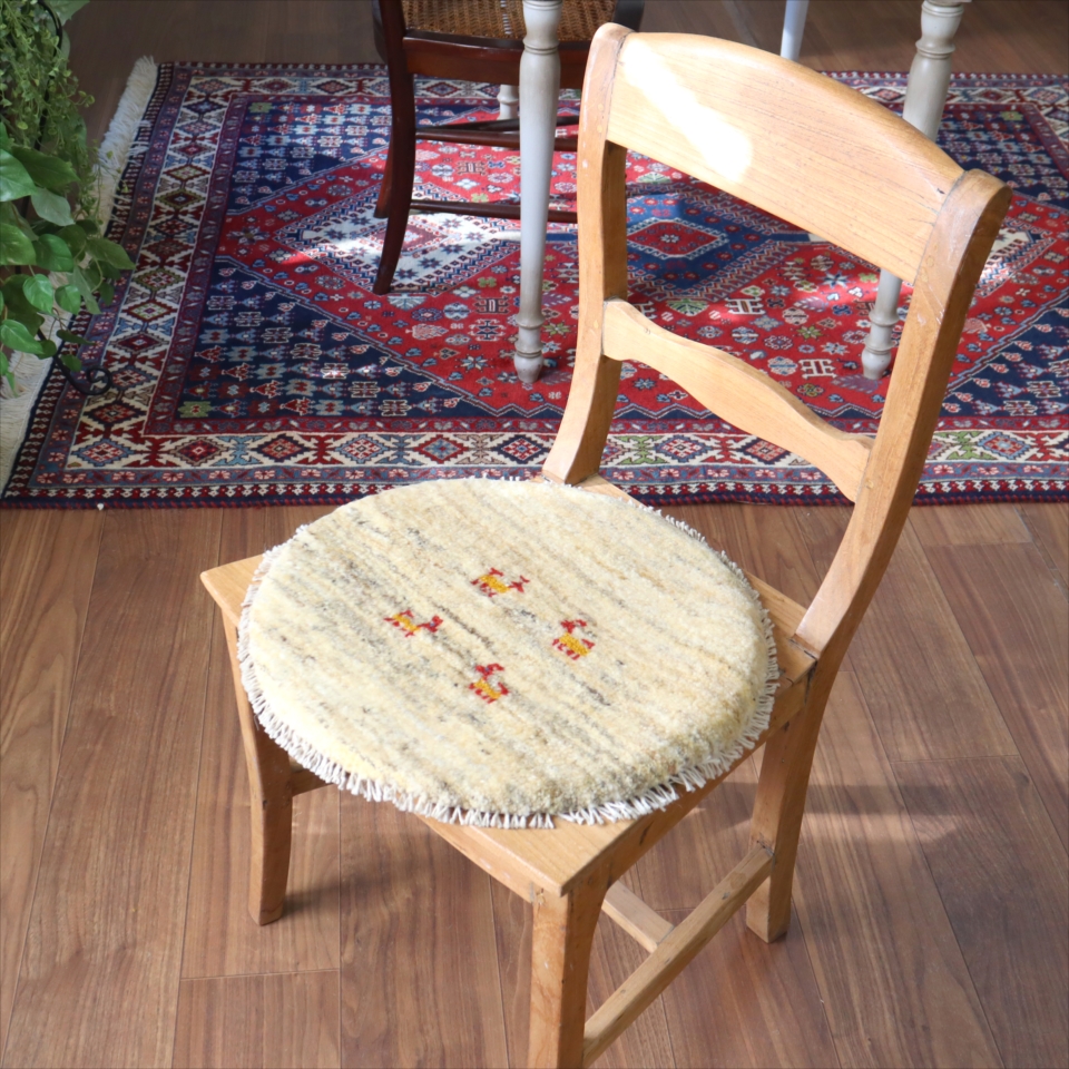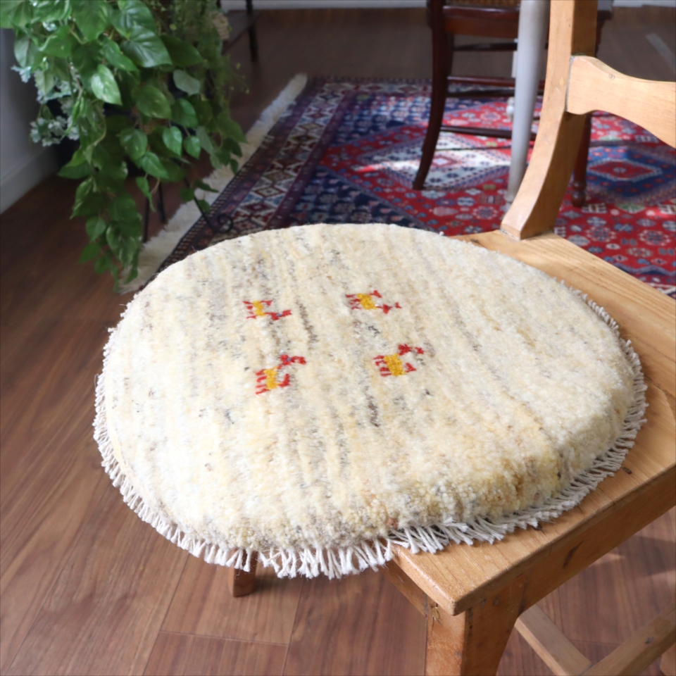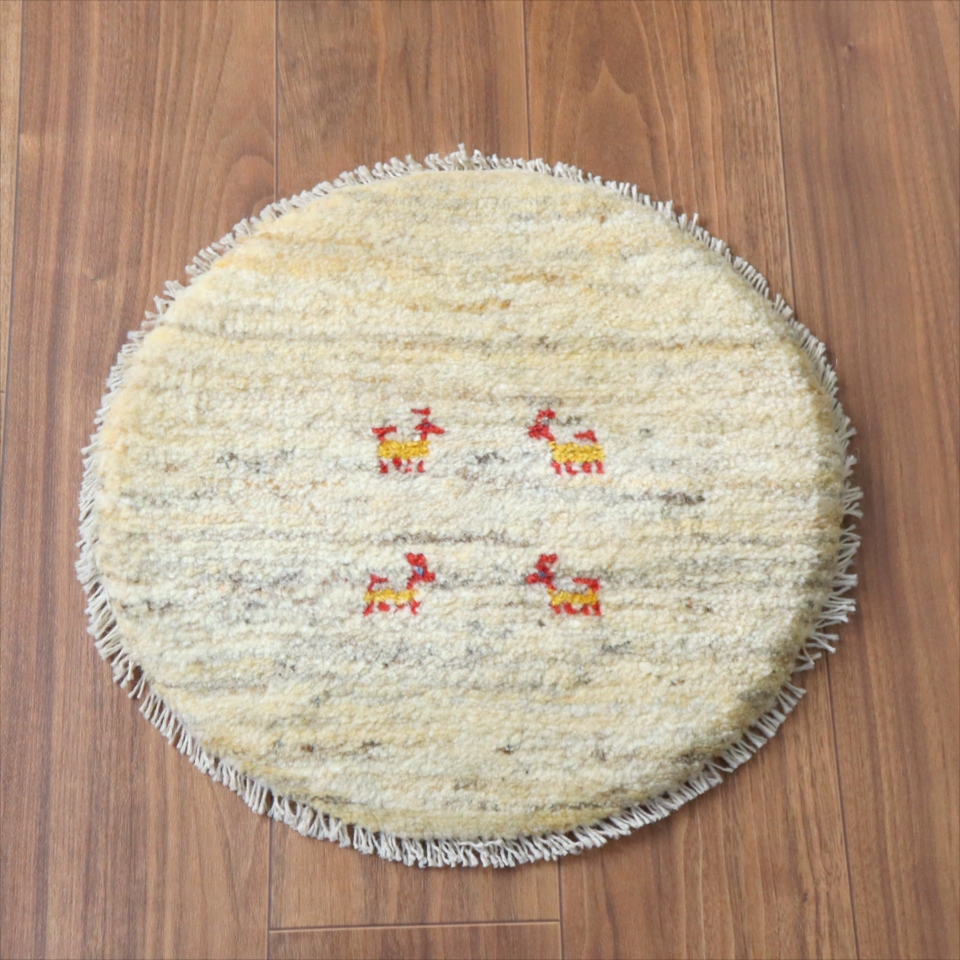 ギャッベ 円形座布団サイズ φ41cm ナチュラルアイボリー ベージュ