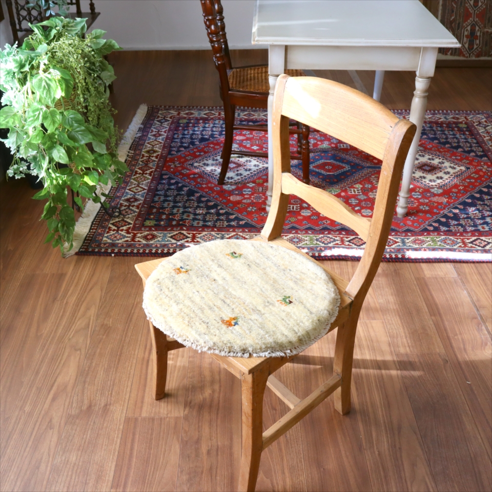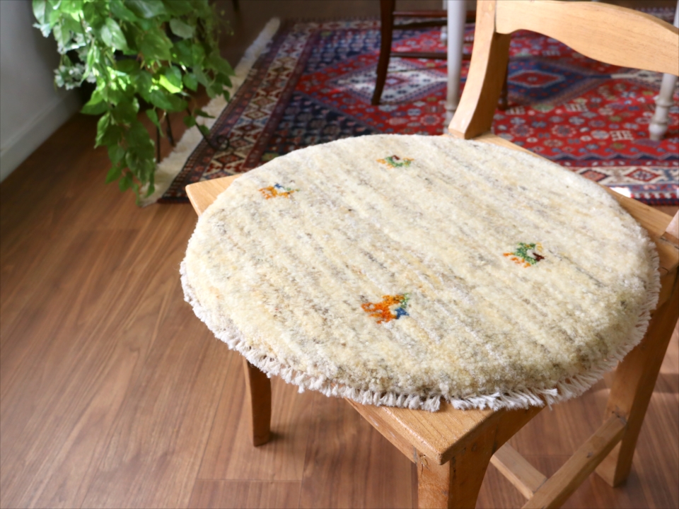 ギャッベ 円形座布団サイズ φ41cm ナチュラルアイボリー ベージュ