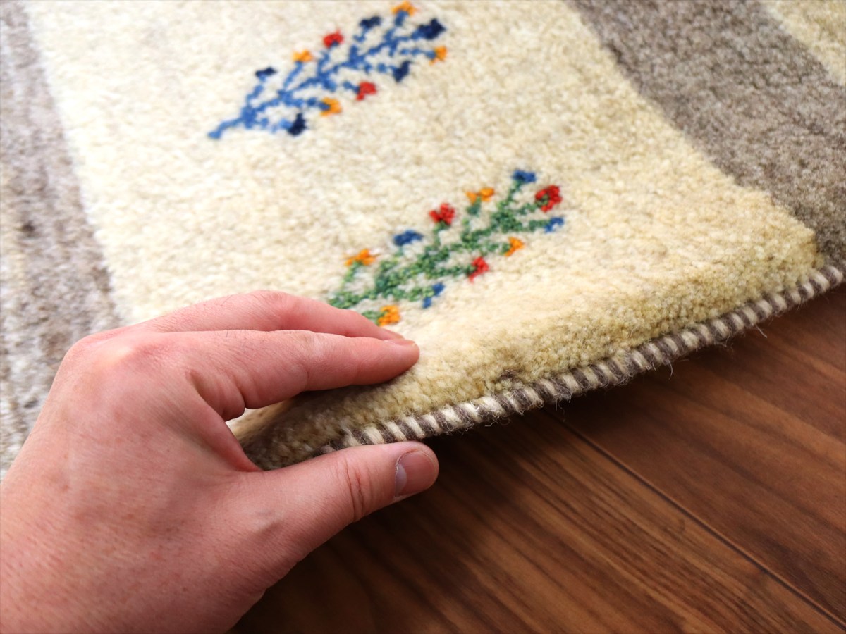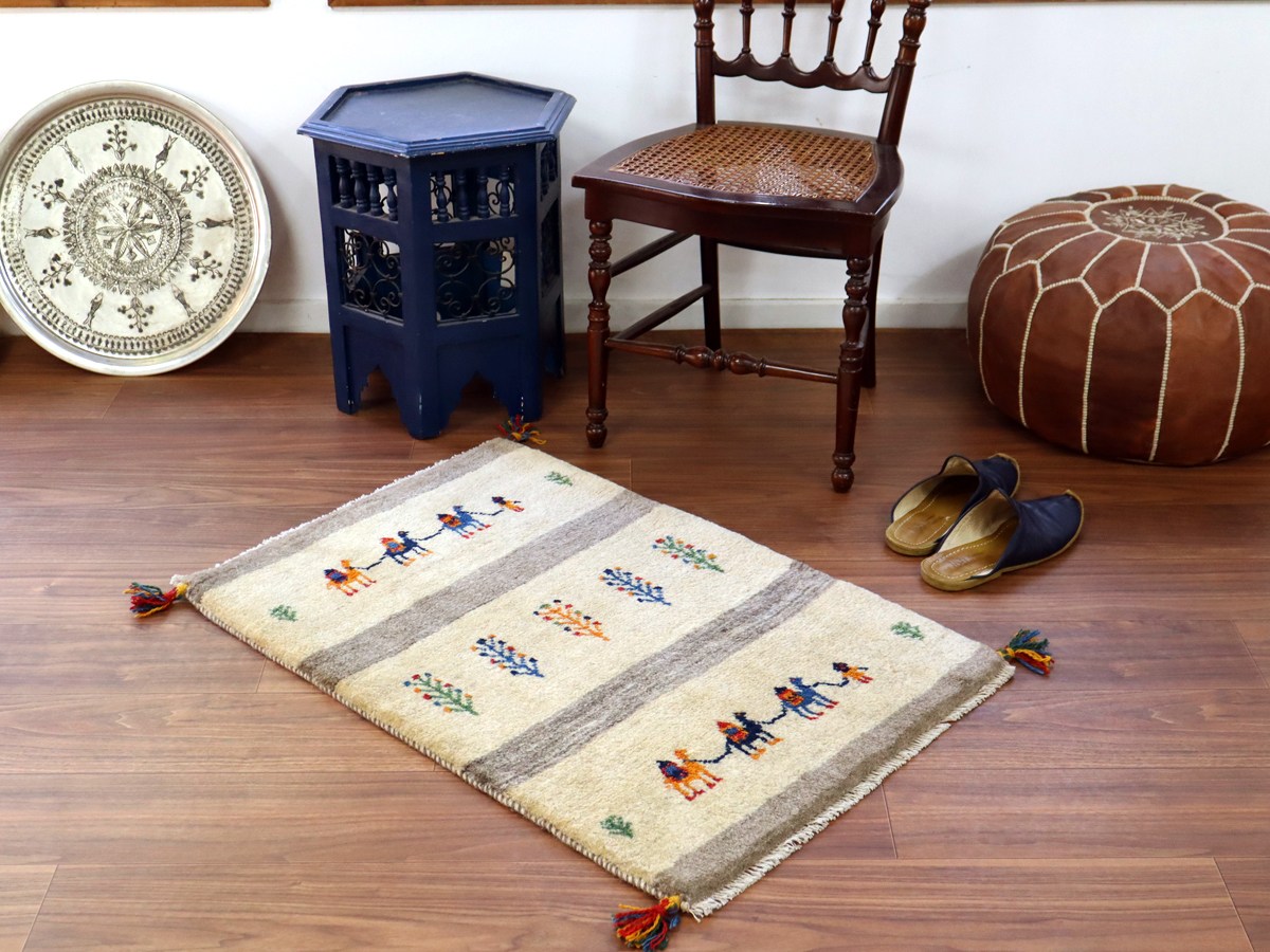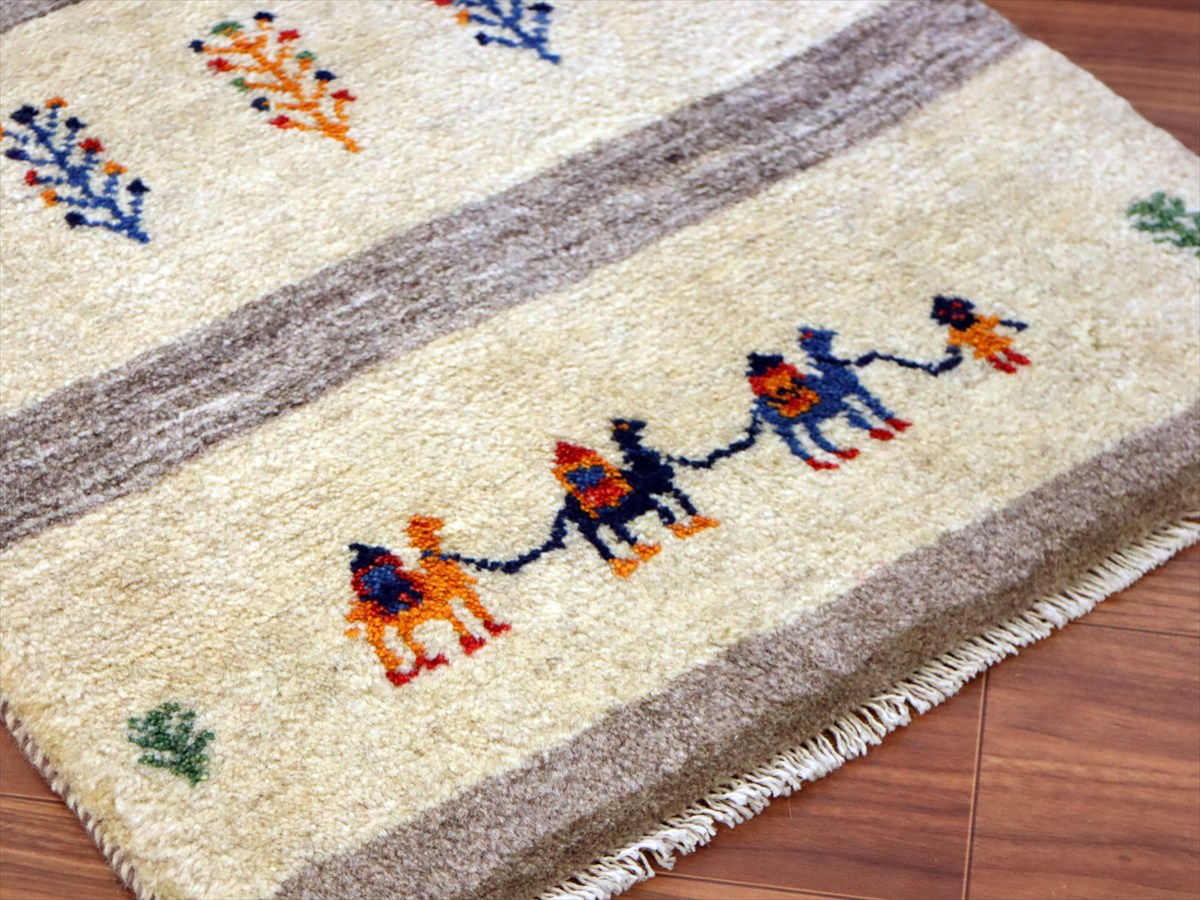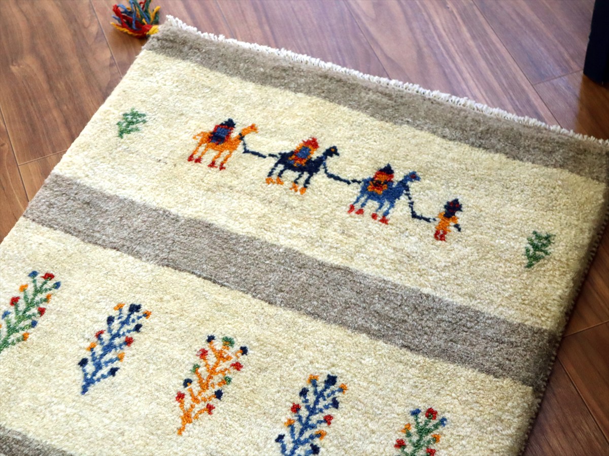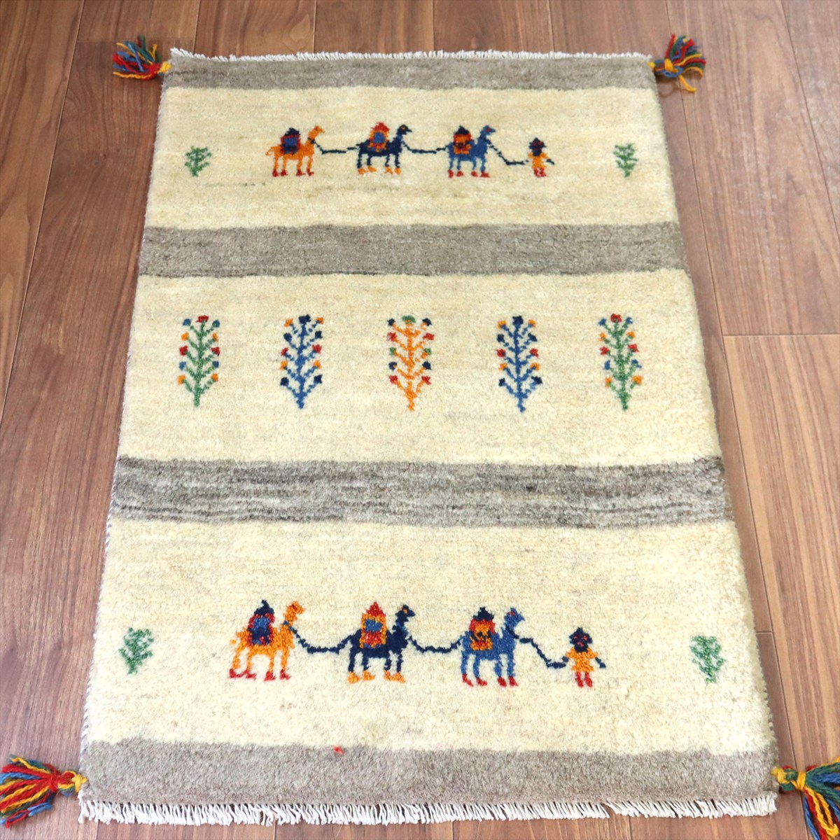 ギャッベ イラン産手織り 90×62cm 玄関マット ナチュラルアイボリー ラクダのキャラバン