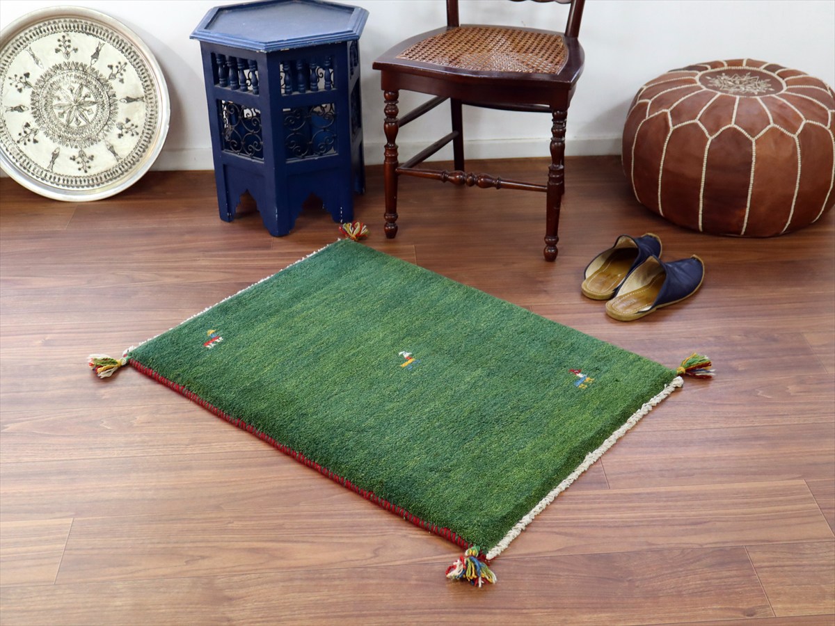 Key:ギャッベ, ギャベ, グリーン 緑 天然染料 草木染 ラグ, 絨毯, イラン, シラーズ, ペルシャ, バザールギャッベ, ポンポン, 手織り, 一点もの, 玄関マット, Gabbeh, Tribal rug, Shiraz, Fars, Iran, Persia, Wool, ふかふか, ガラタバザール