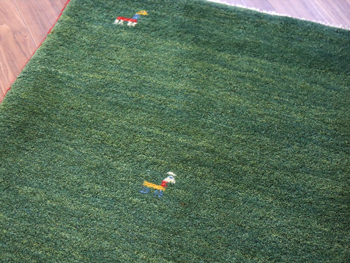 ギャッベ イラン産手織り 91×64cm 玄関マット グリーン 動物モチーフ
