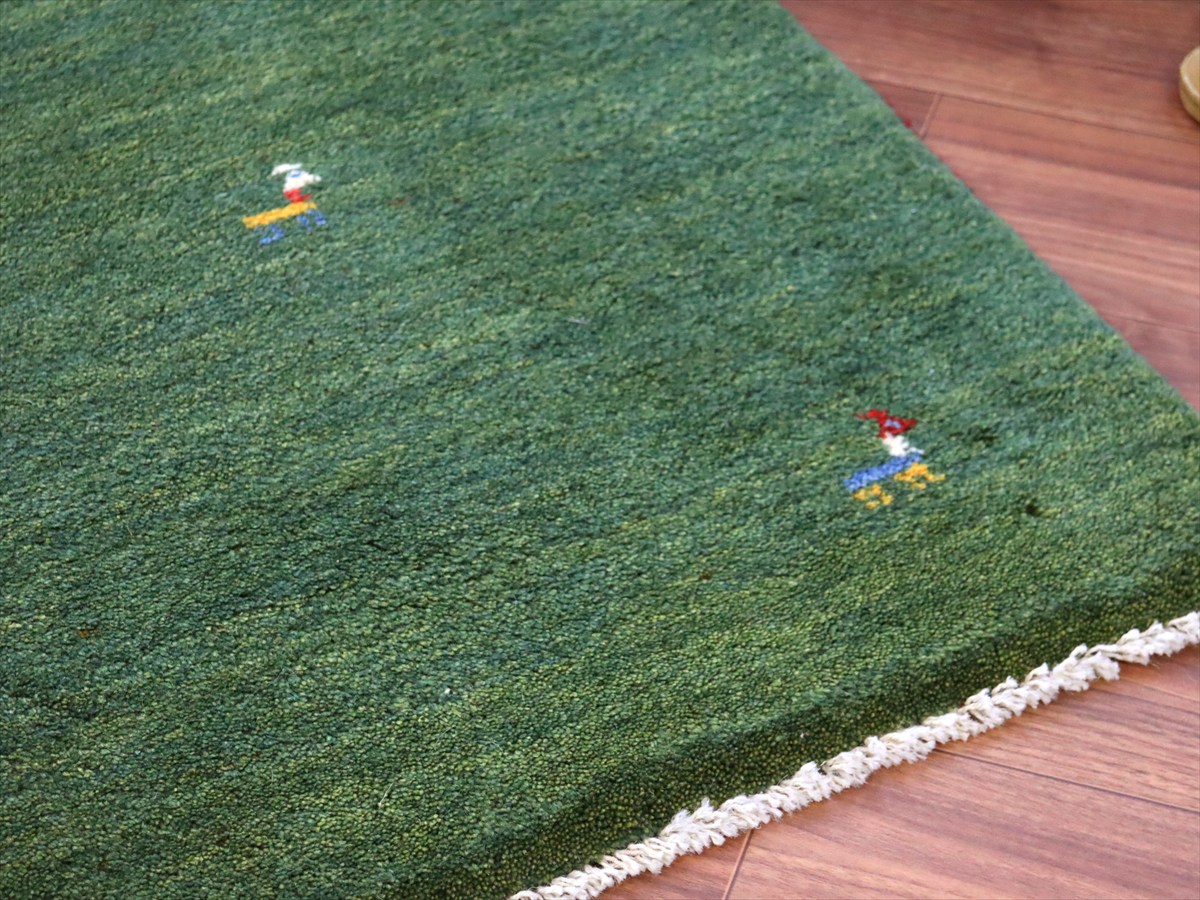 | 鮮やかなグリーンをベースに、動物モチーフが織られているシンプルなギャッベ。 |