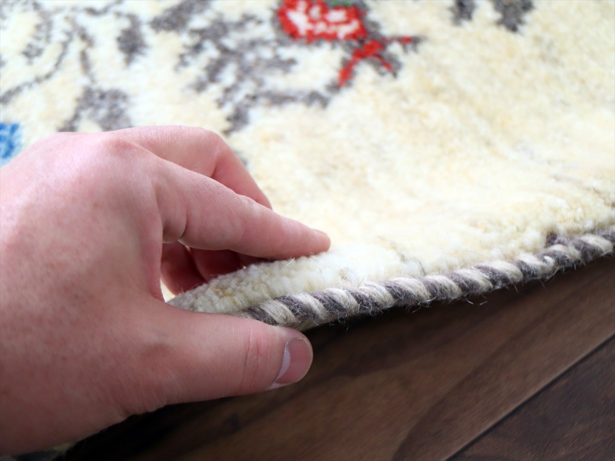 | 毛足(パイル)が長く、ふかふかとしたボリュームのある織りのギャッベです。ベースを含めたラグ全体の厚みは2cm前後。 |