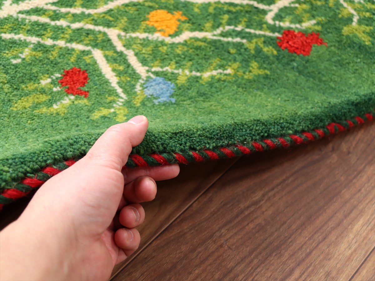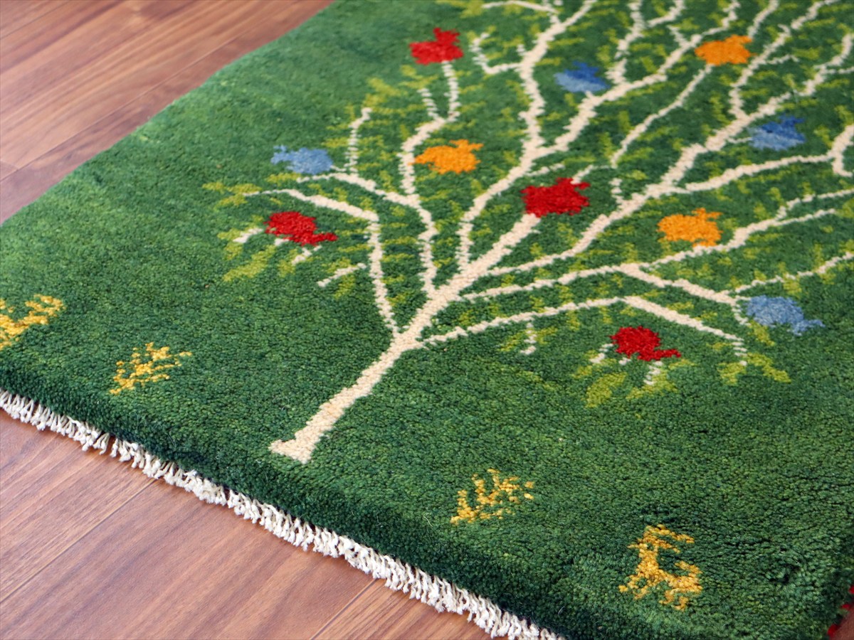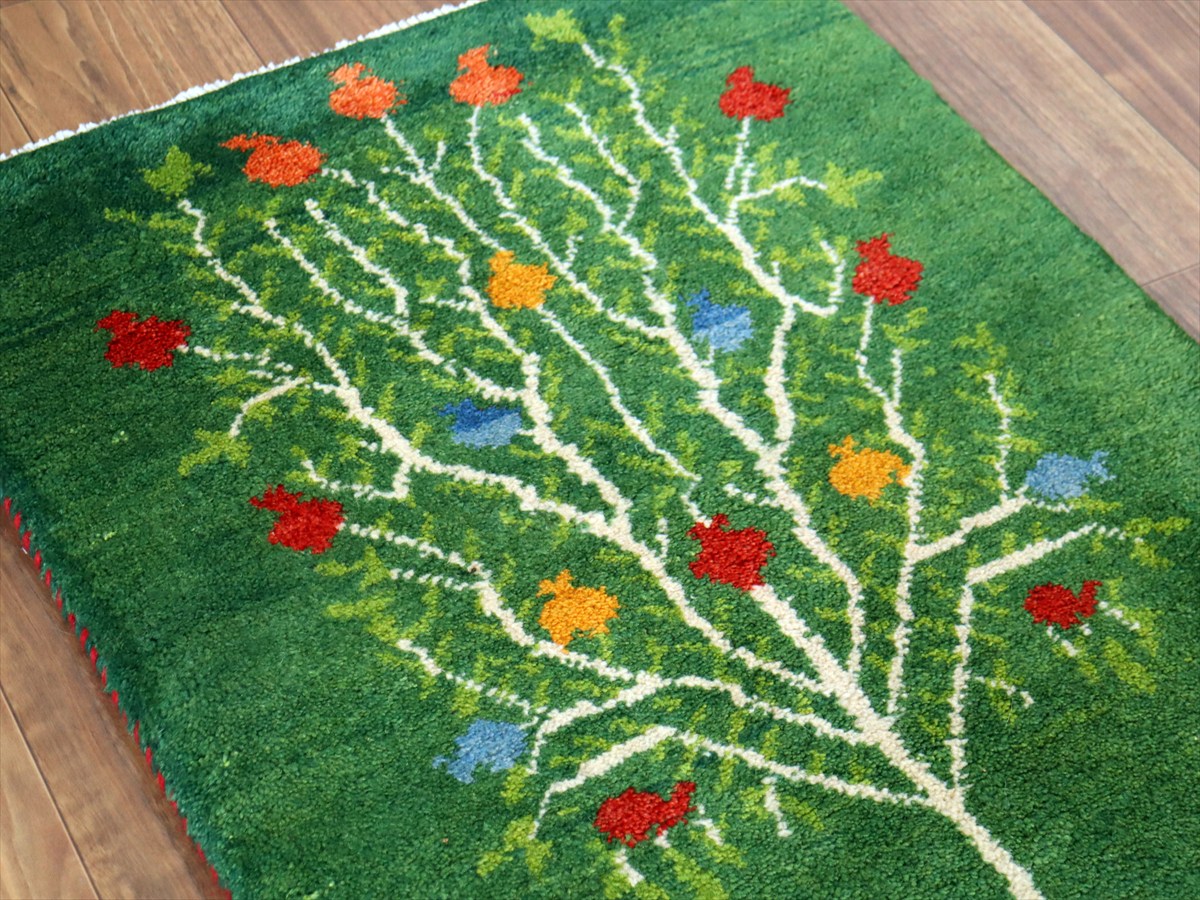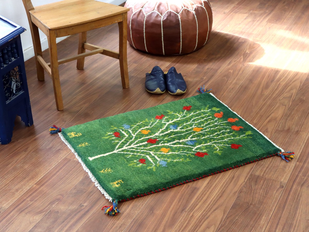 - ギャッベ イラン産手織り 81×62cm 玄関マット グリーン 生命の樹とザクロ