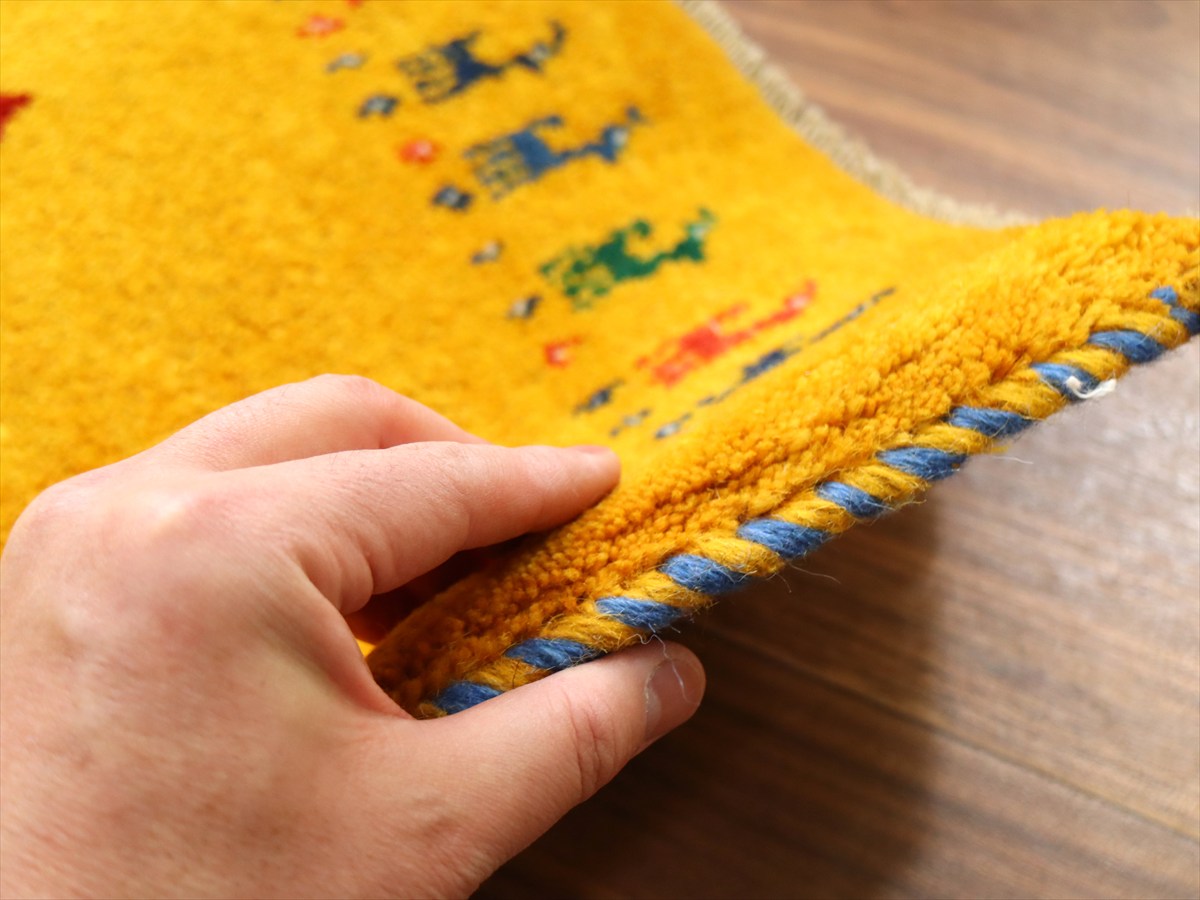Key:Gabbeh, Tribal rug, Shiraz, Fars, Iran, Persia, Wool, ギャッベ, ふかふか, ギャベ, ラグ, 絨毯, イラン, イエロー, オレンジ 黄色 玄関マット シラーズ, ペルシャ, バザールギャッベ, ポンポン, 手織り, 草木染, 一点もの, 現品販売, 玄関マット, ガラタバザール