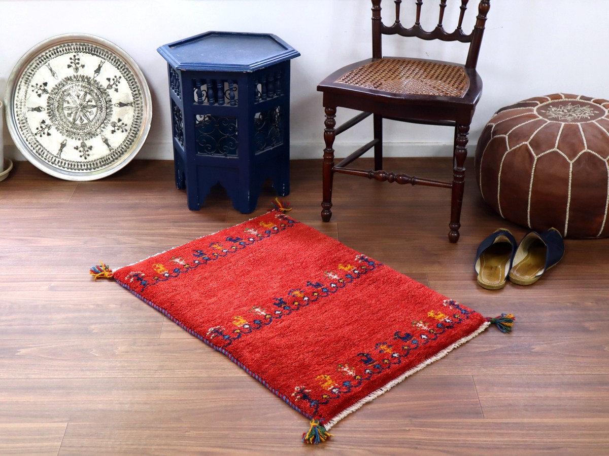 Key:ギャッベ, ギャベ, レッド, 赤, ラグ, 絨毯, イラン, シラーズ, ペルシャ, バザールギャッベ, ポンポン, 手織り, 一点もの, 玄関マット, ふかふか, Gabbeh, Tribal rug, Shiraz, Fars, Iran, Persia, Wool, 一点もの, 現品販売,ガラタバザール