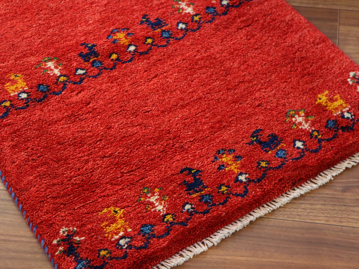 - ギャッベ イラン産手織り 83×60cm 玄関マット レッド カラフルな動物と生命の樹