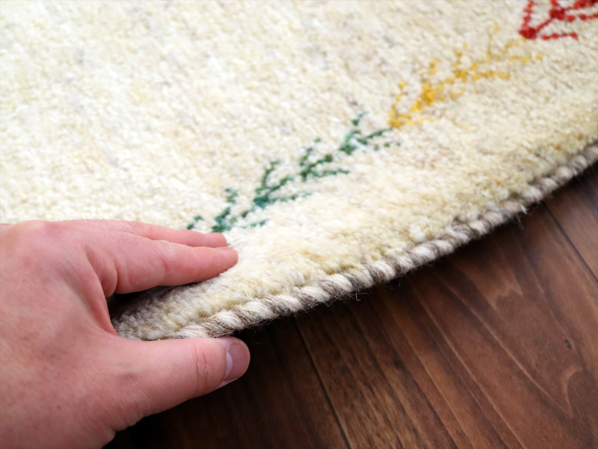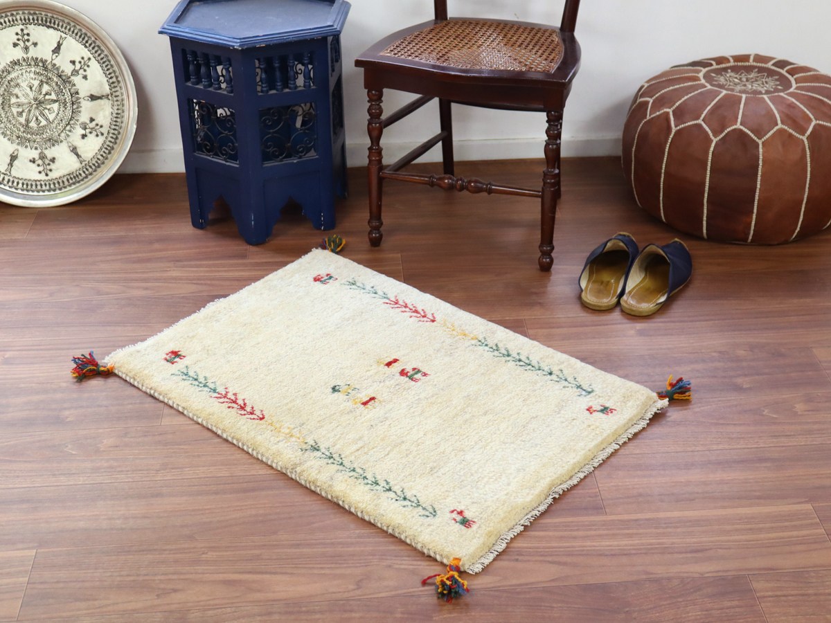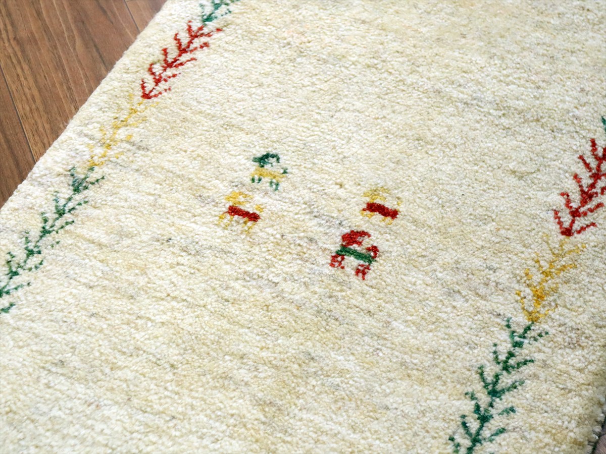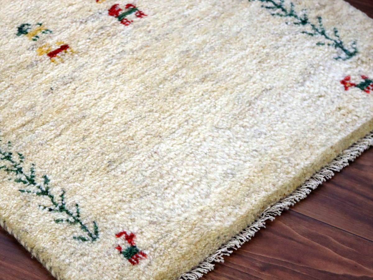 ギャッベ イラン産手織り 88×59cm 玄関マット ナチュラルアイボリー 連なる生命の樹と動物