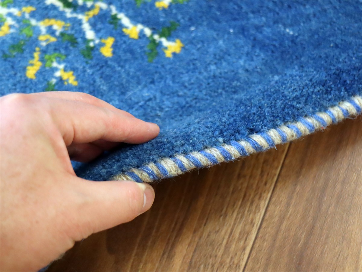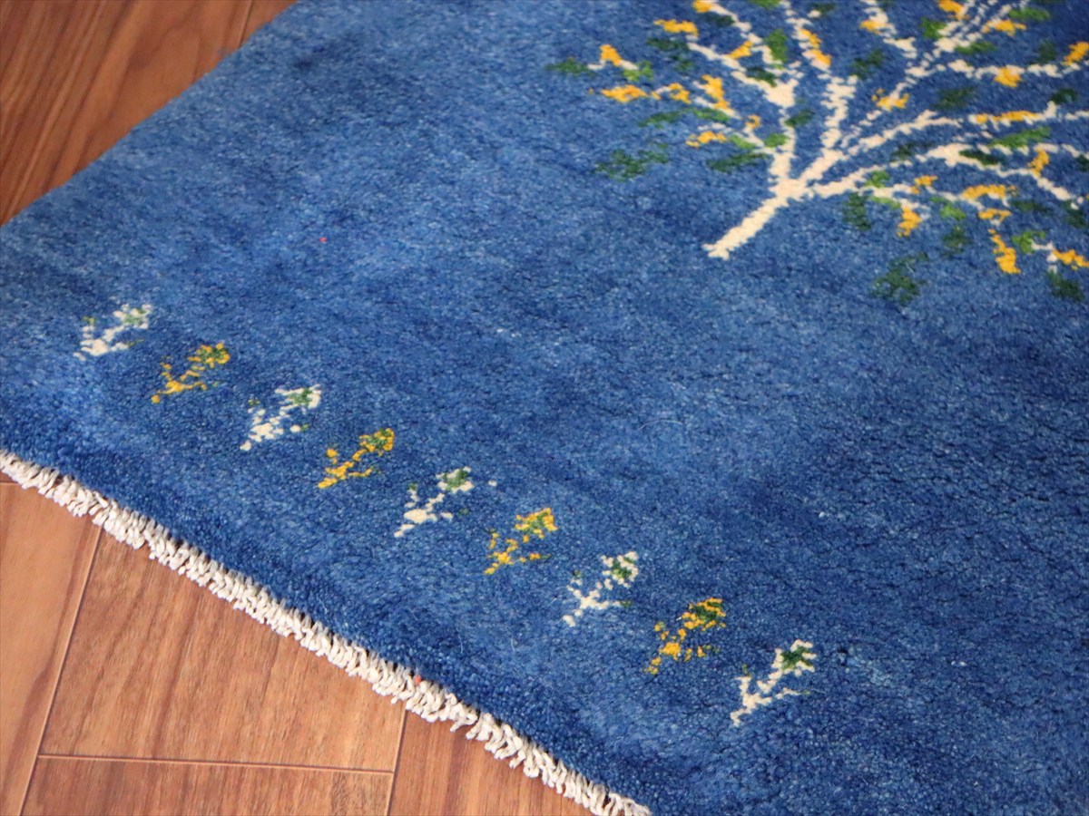 - ギャッベ イラン産手織り 87×62cm 玄関マット ブルー 生命の樹