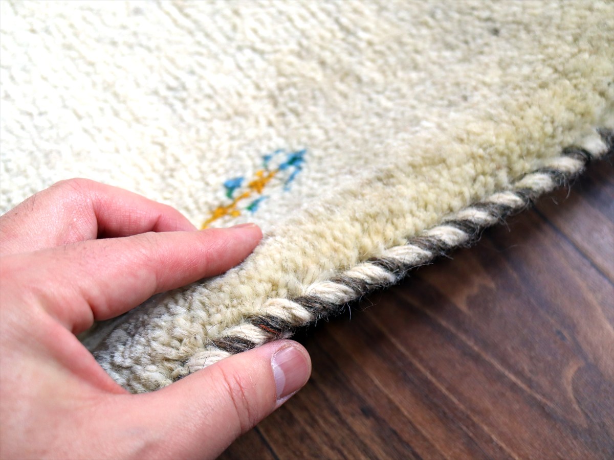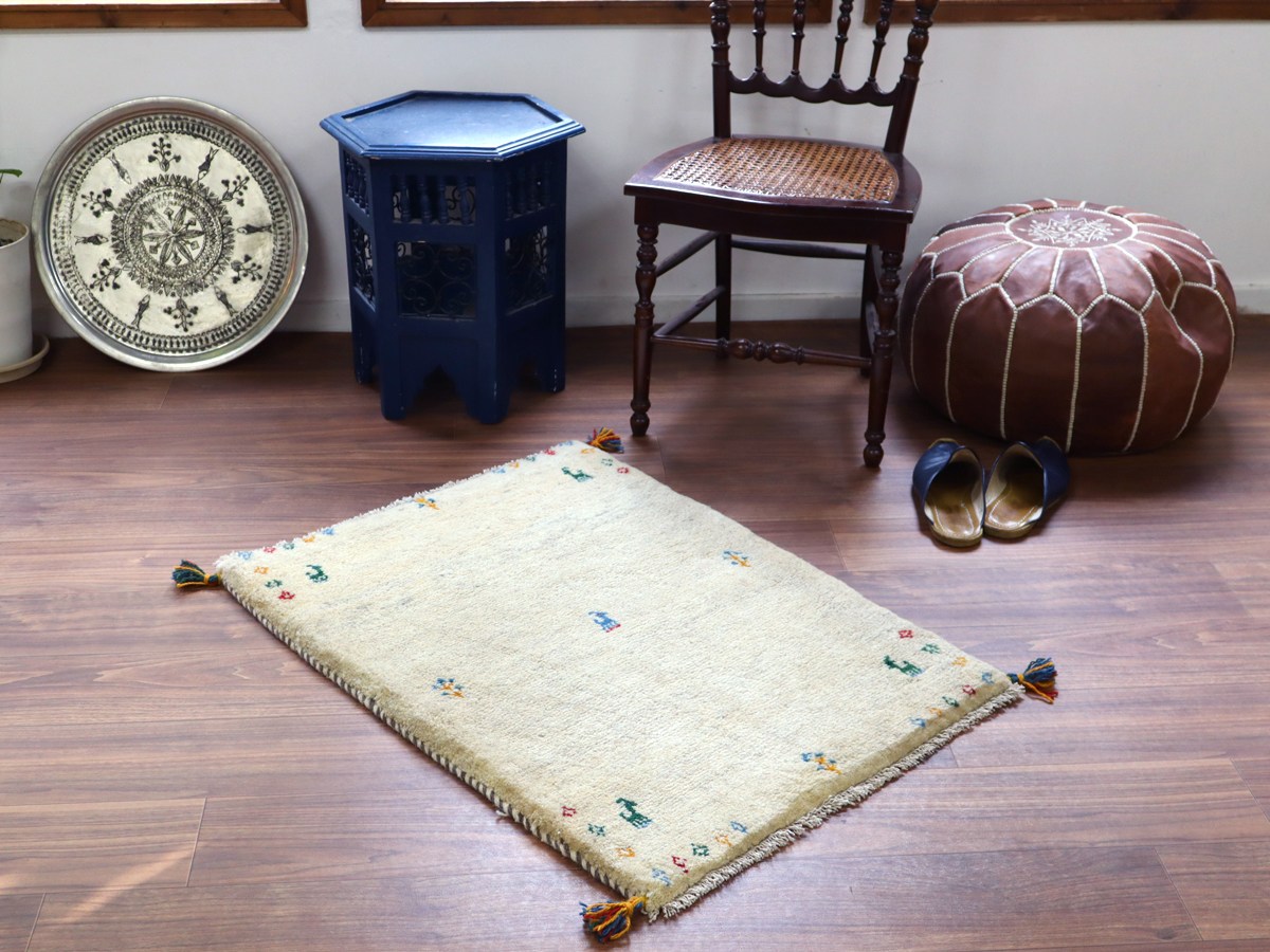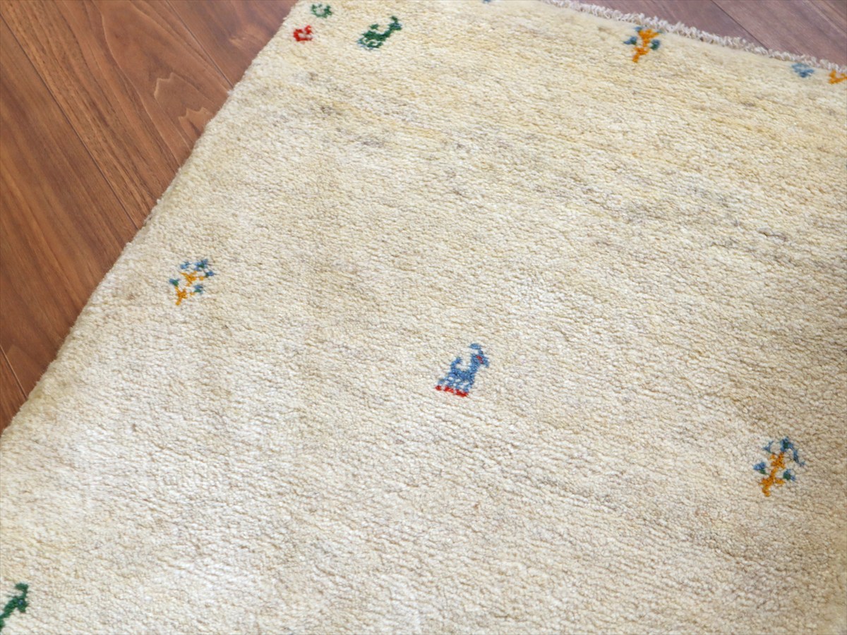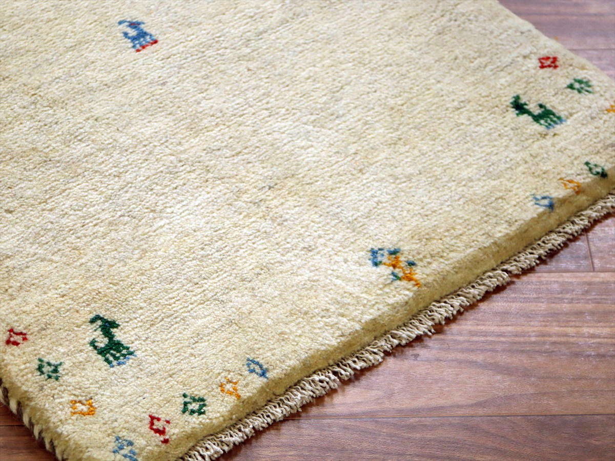 ギャッベ イラン産手織り 91×69cm 玄関マット ナチュラルアイボリー 動物とカラフルモチーフ
