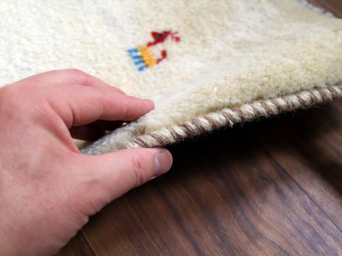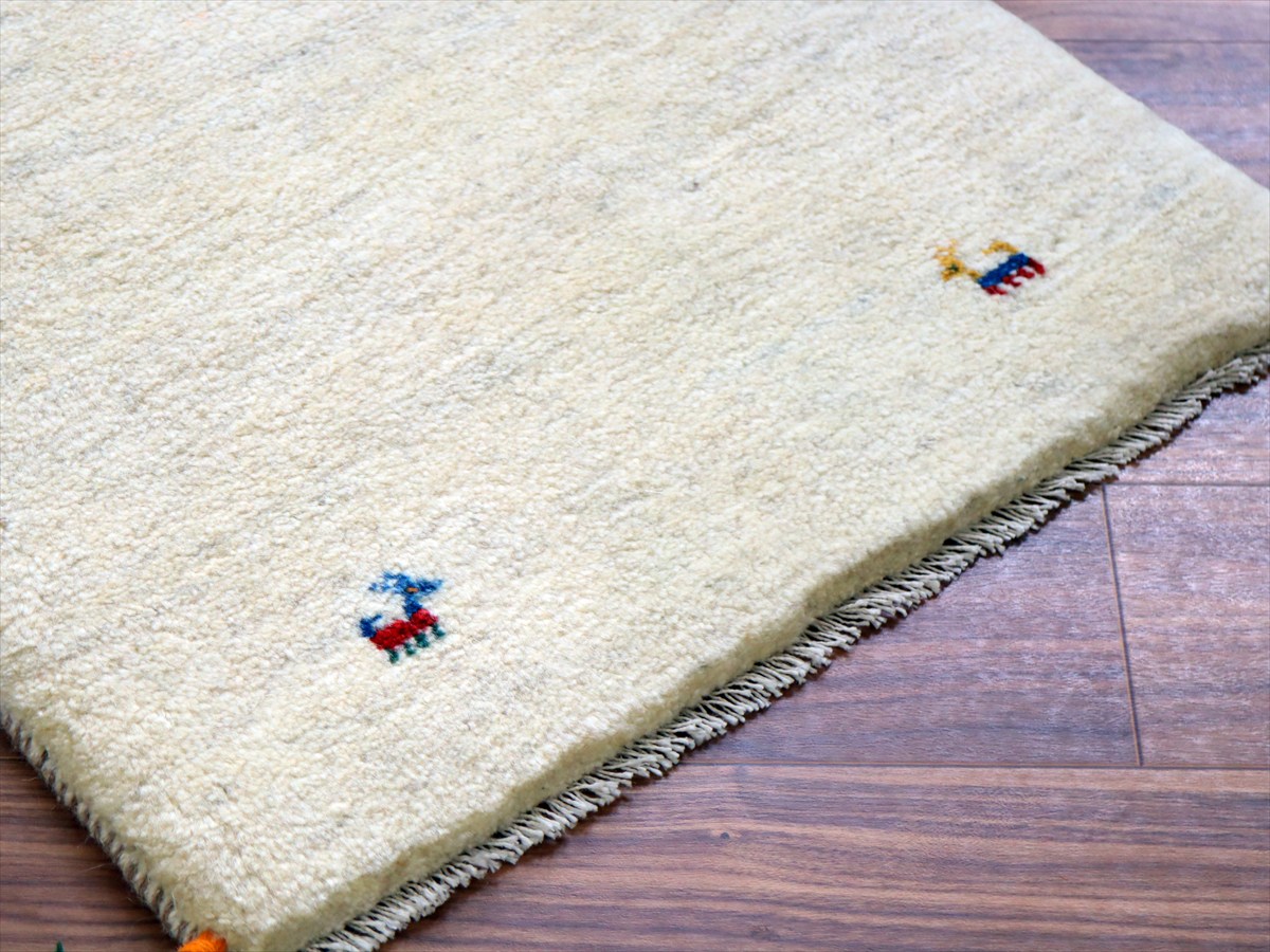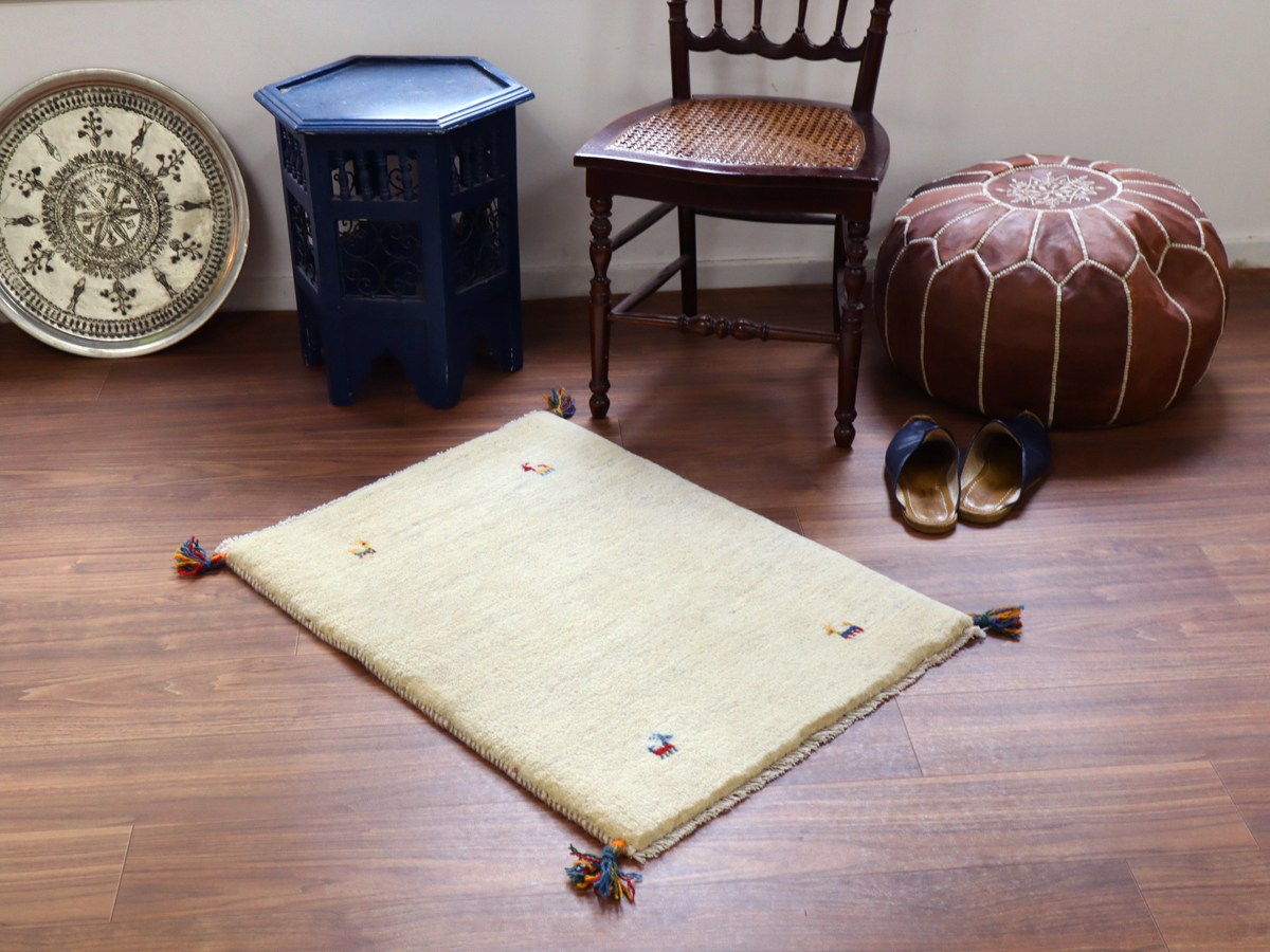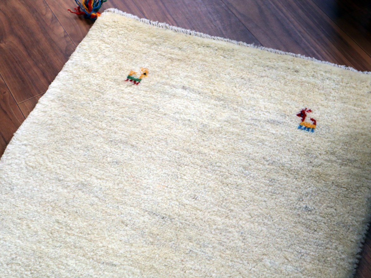 ギャッベ イラン産手織り 84×63cm 玄関マット ナチュラルアイボリー 動物モチーフ