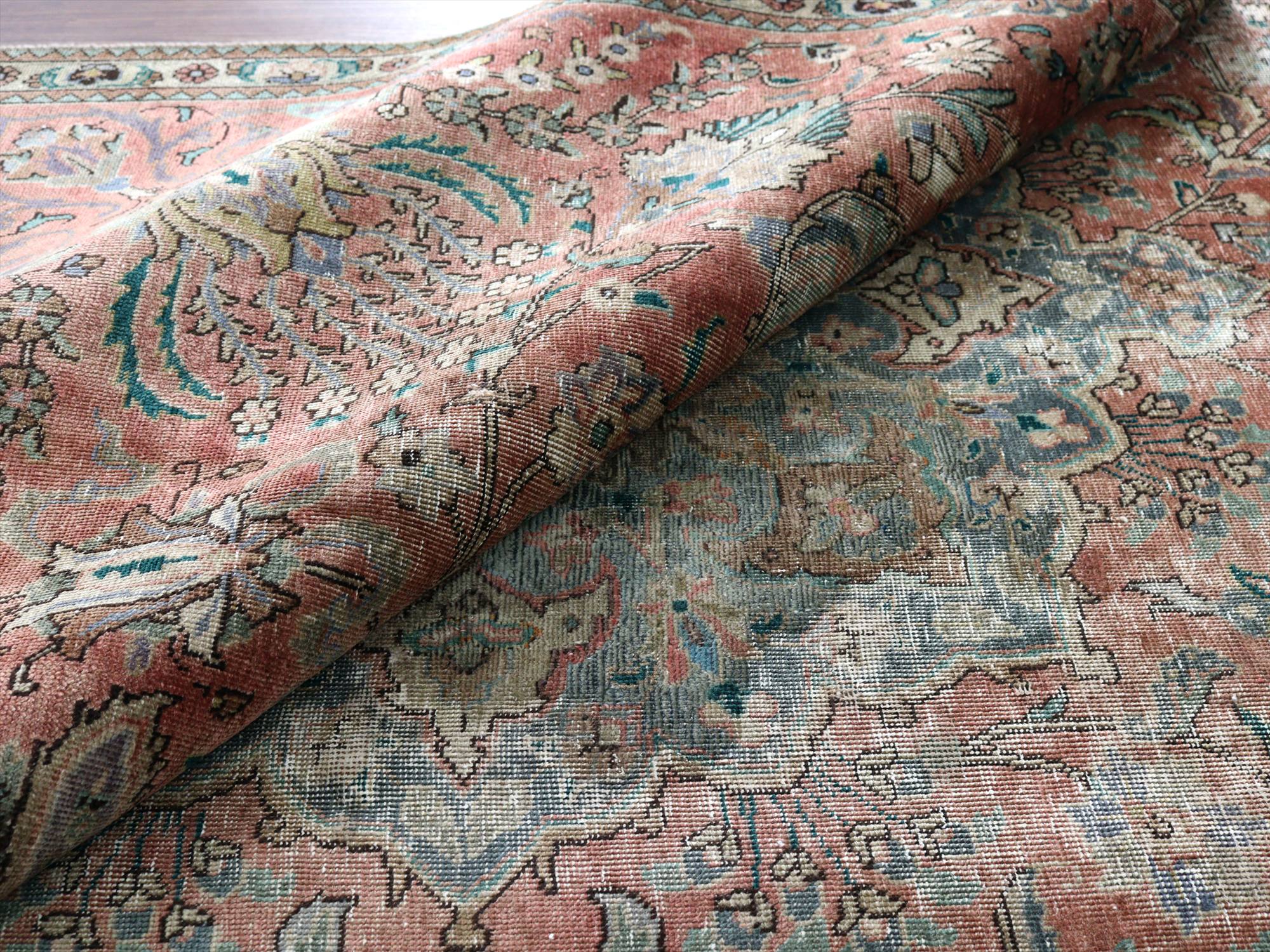 Key:Antique Rug, Recycle rug, reclamation rug, Upcycle, vintage, Persian Carpet, Vintage wash, Bleach, Hand knotted, BO-HO, トライバルラグ, ペルシャ絨毯, オーバーダイド, 後染め, リサイクルラグ, リクラメーション, アップサイクル, 手織り, じゅうたん, ヴィンテージ, アンティークラグ, パステル, シャビーシック, 店舗什器, 店舗用, ラグ