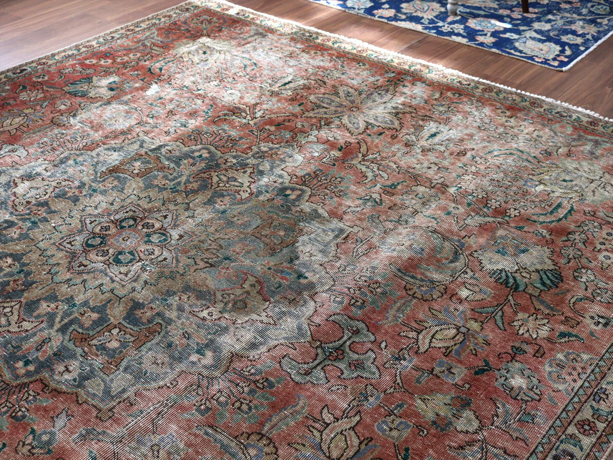 オーバーダイド ヴィンテージラグ レッド273×228cm タブリーズ イランの手織り絨毯