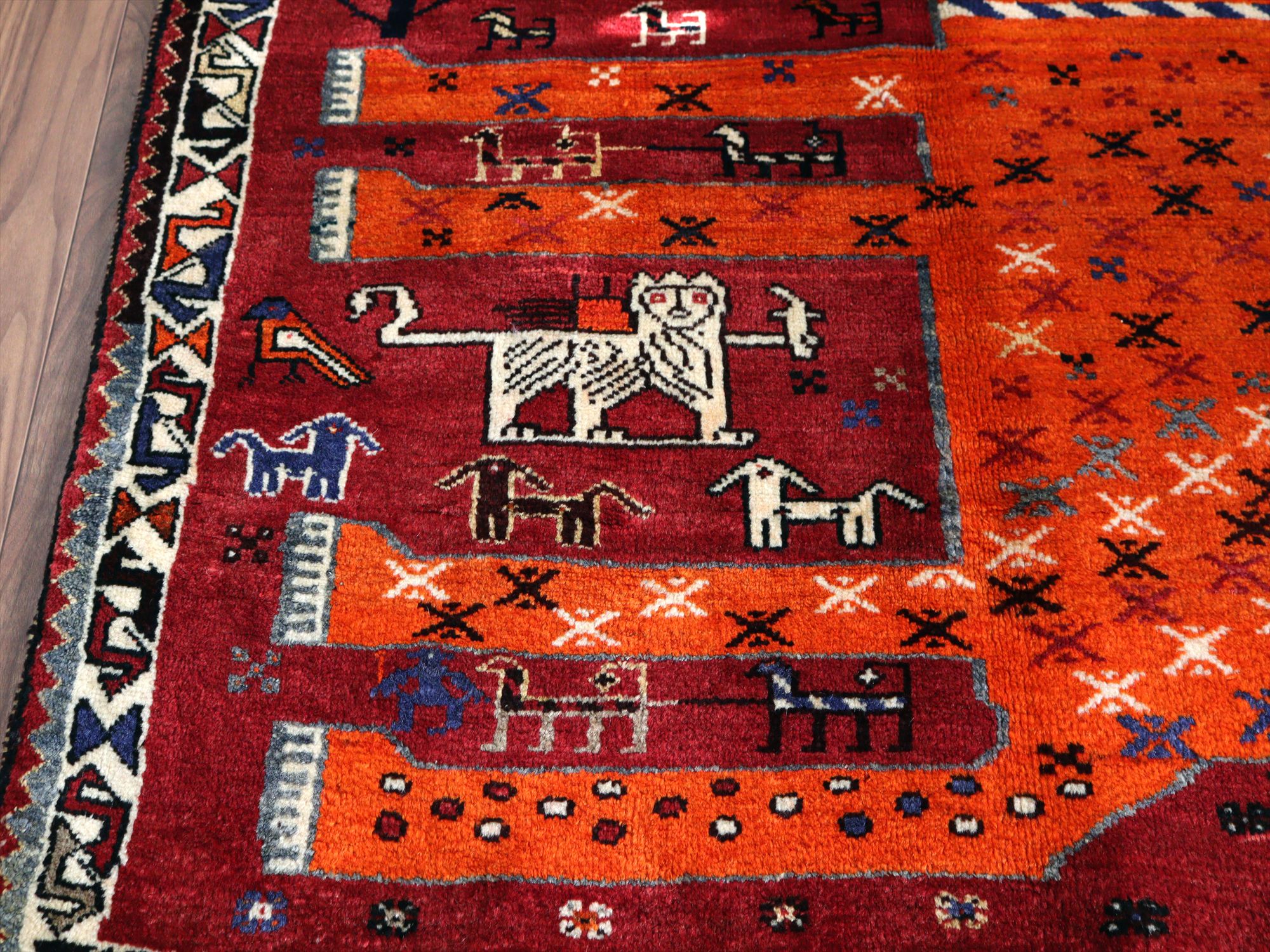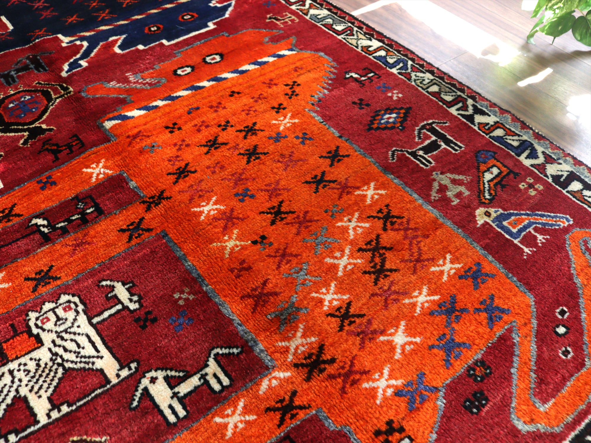 Key:old gabbeh, lion gabbeh, lion rug, vintage rug, Tribal rug, オールドギャベ, ライオンギャッベ, ライオンラグ, ラグ, ギャッベ, ギャベ, 部族絨毯, トライバルラグ, ヴィンテージ, コレクタブル, ウール製, イラン, ペルシャ, 手織り, じゅうたん, 絨毯