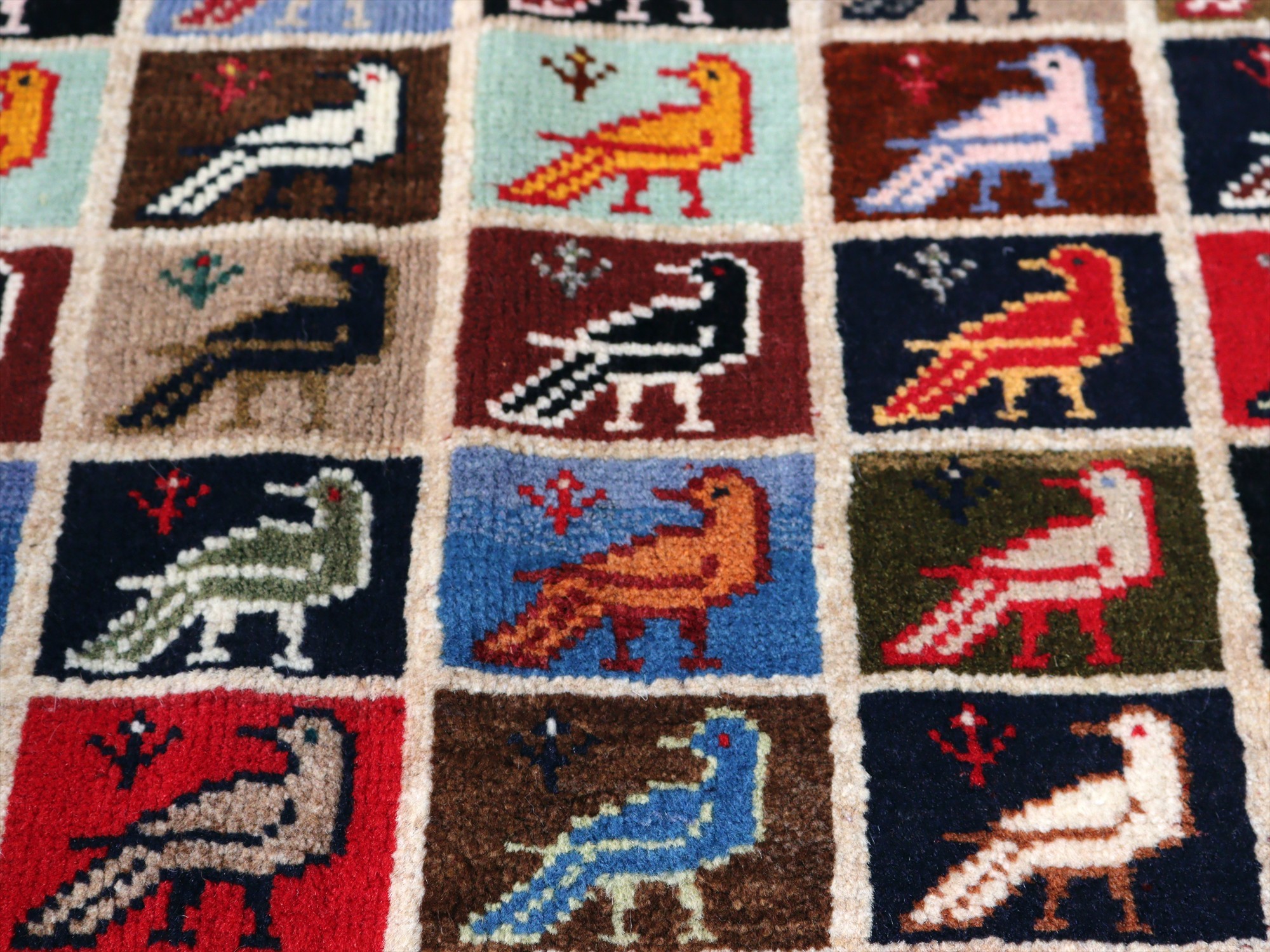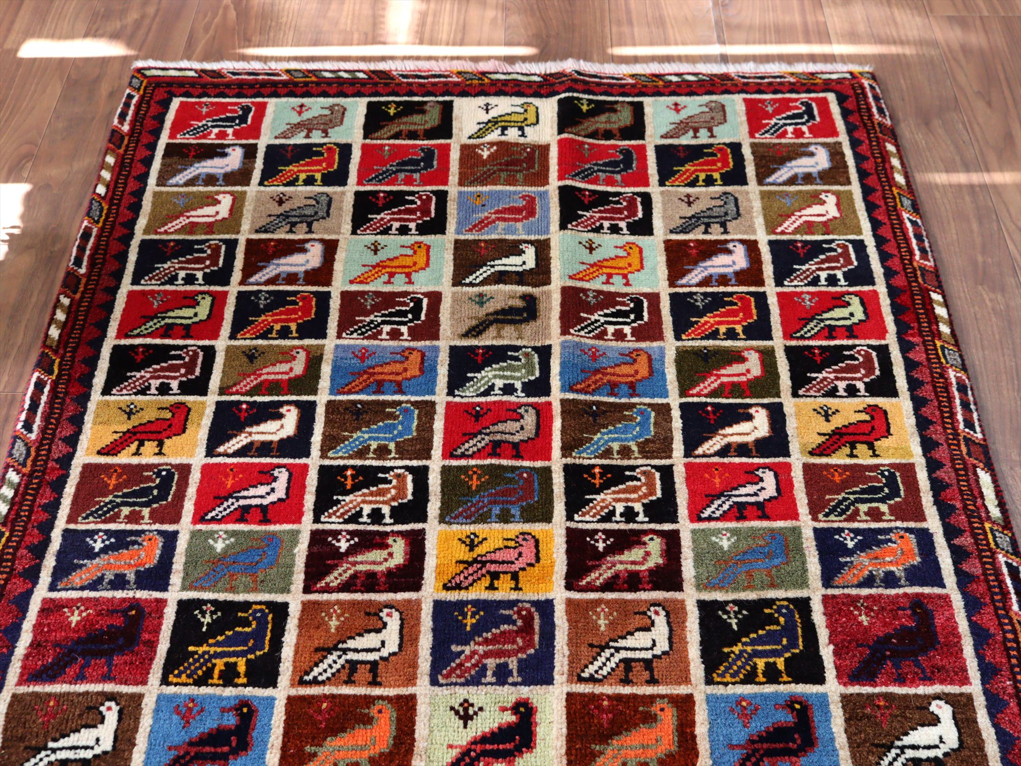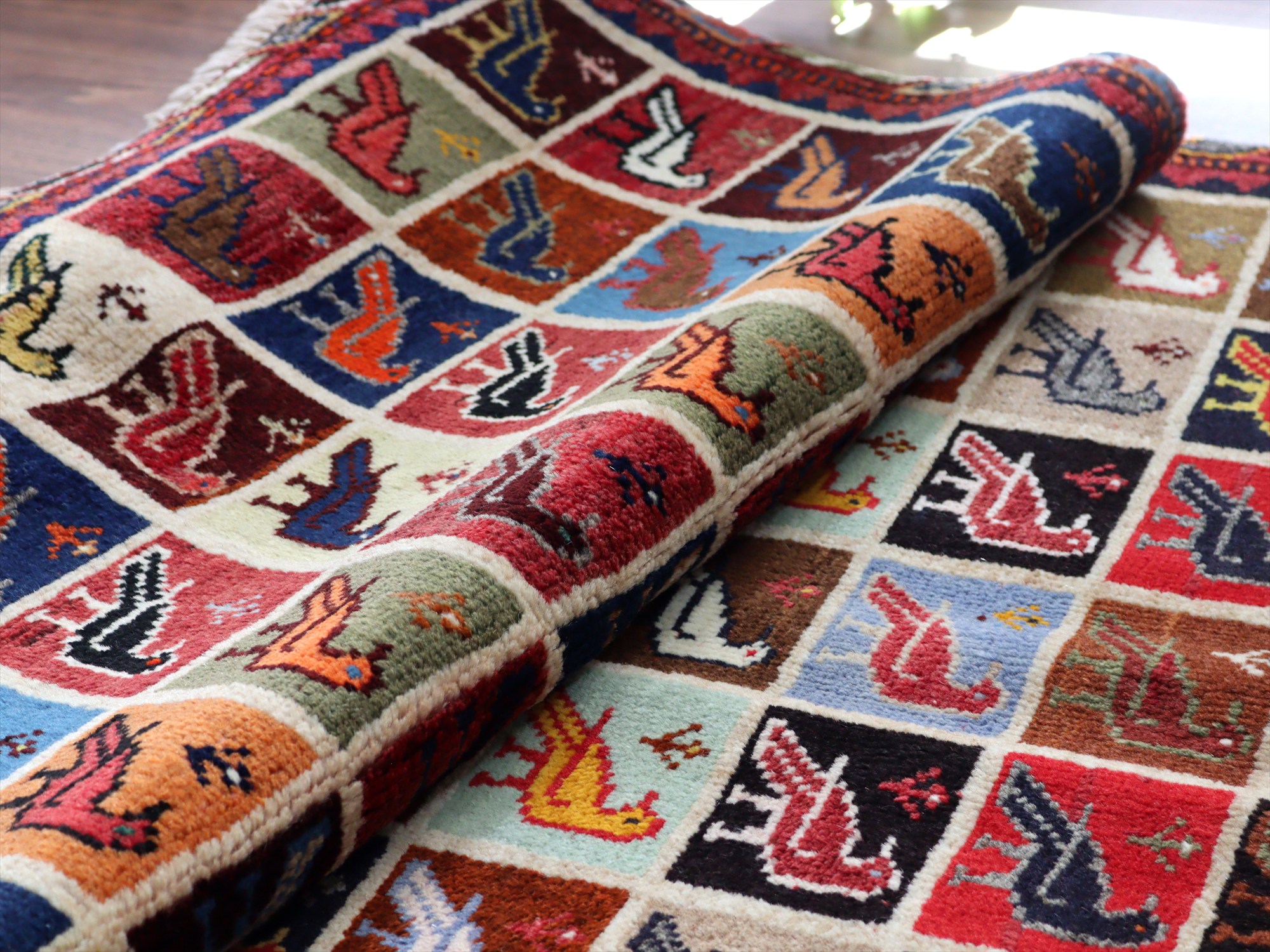 手織りギャッベ バード トレリスデザイン 170x105cm カラフルタイル 鳥