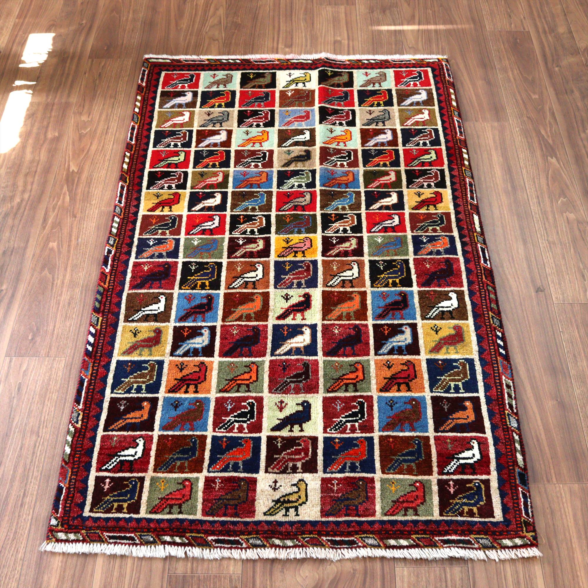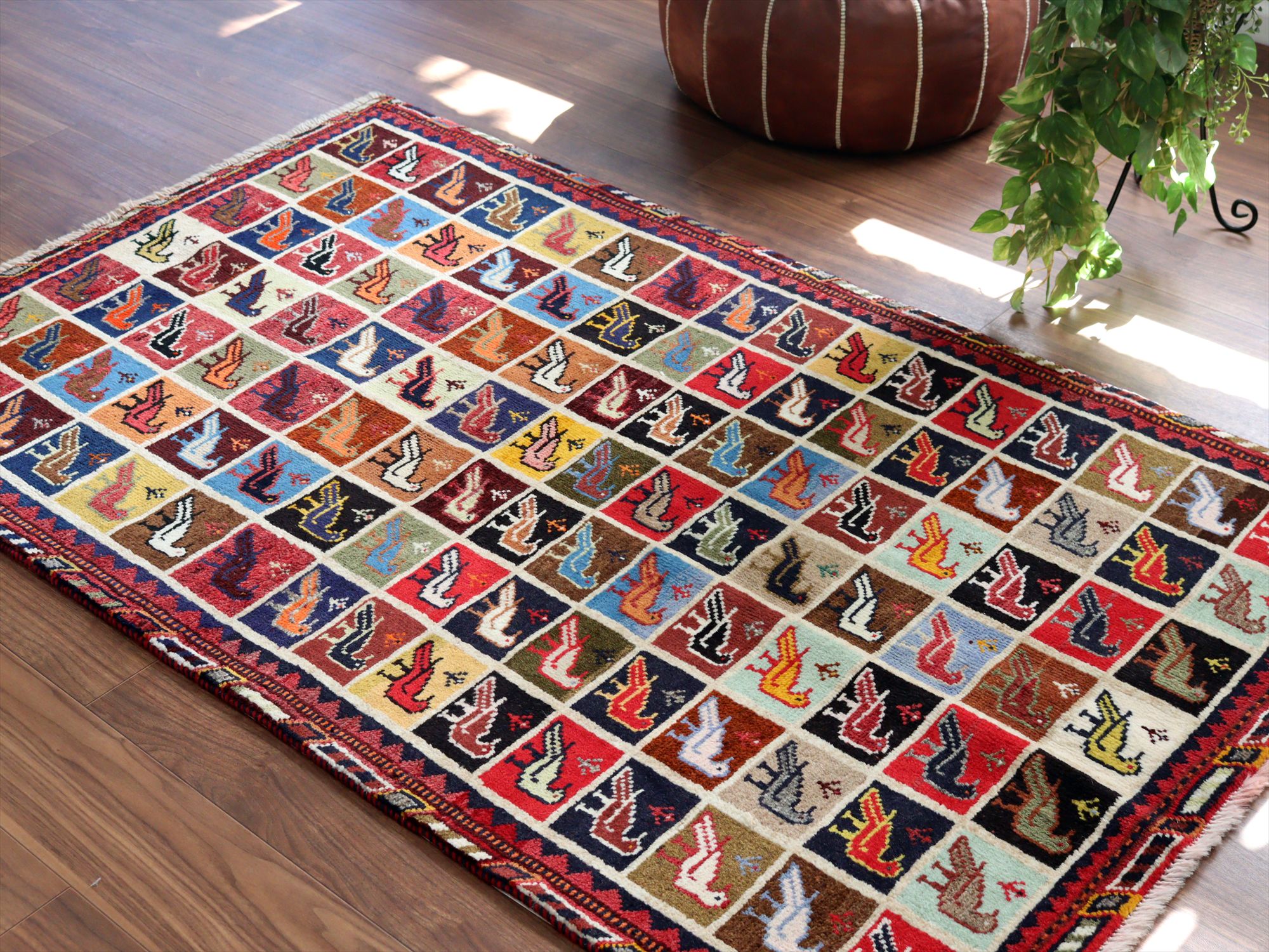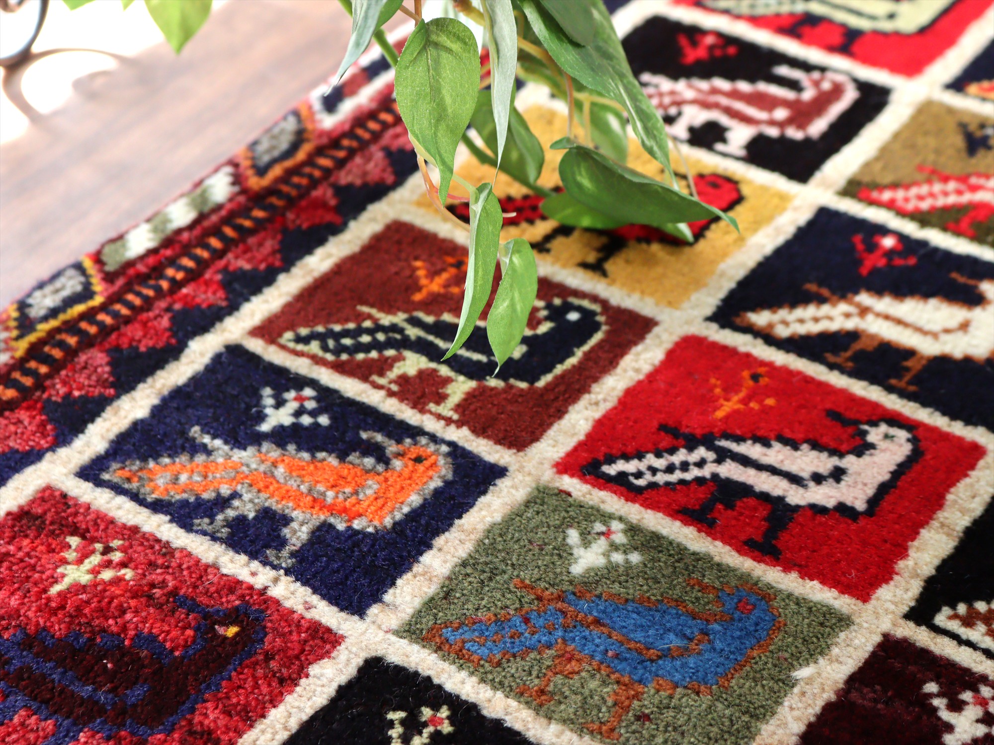手織りギャッベ バード トレリスデザイン 170x105cm カラフルタイル 鳥
