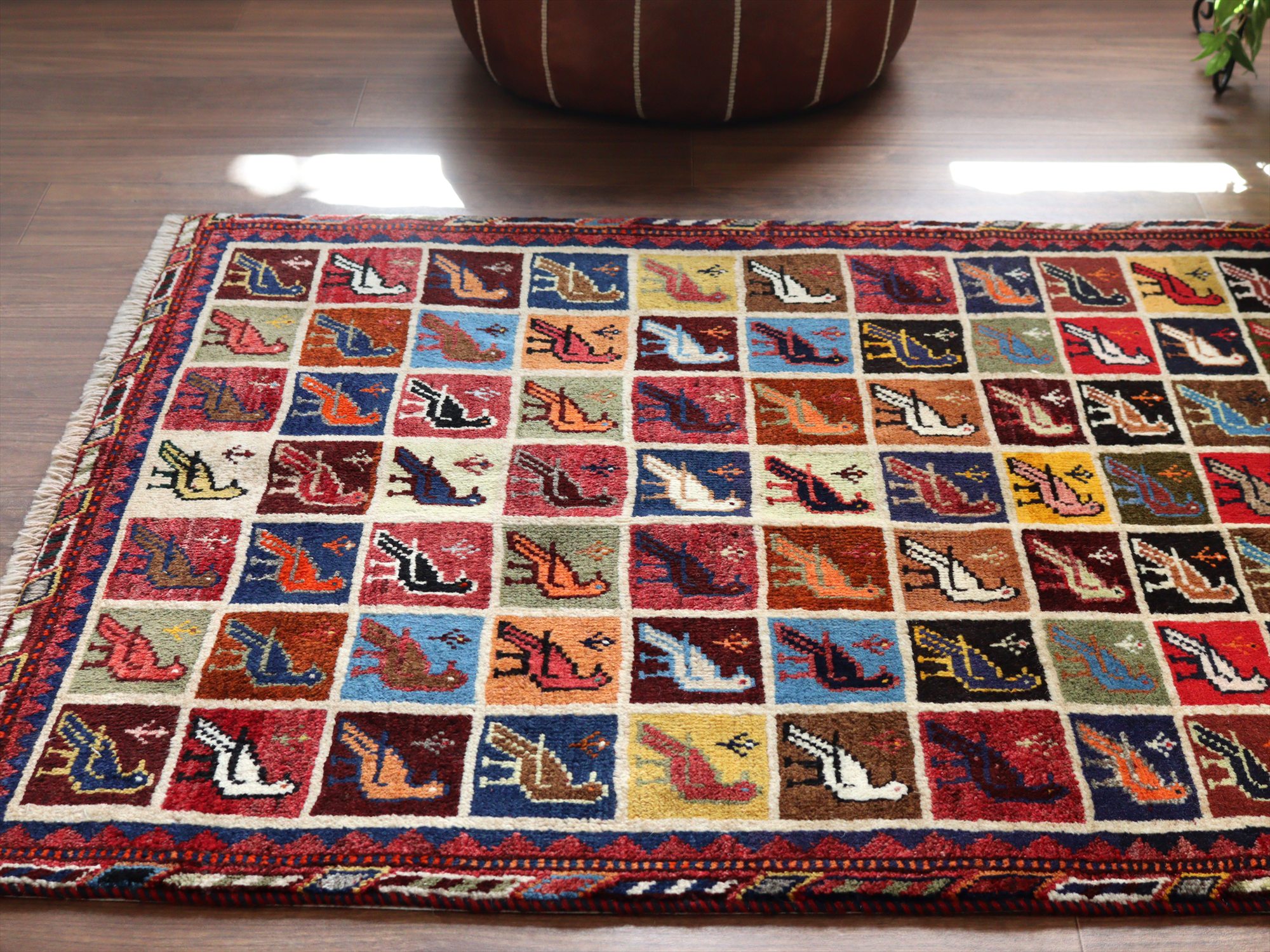 - 手織りギャッベ バード トレリスデザイン 170x105cm カラフルタイル 鳥