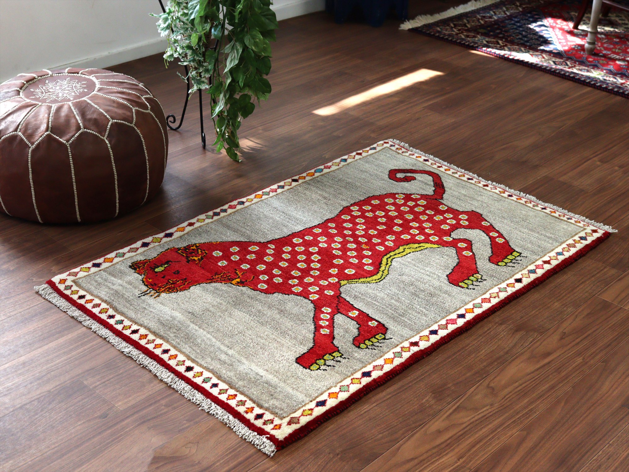 Key:old gabbeh, lion gabbeh, lion rug, vintage rug, Tribal rug, オールドギャベ, ライオンギャッベ, ライオンラグ, ラグ, ギャッベ, ギャベ, 部族絨毯, トライバルラグ, ヴィンテージ, コレクタブル, ウール製, イラン, ペルシャ, 手織り, じゅうたん, 絨毯