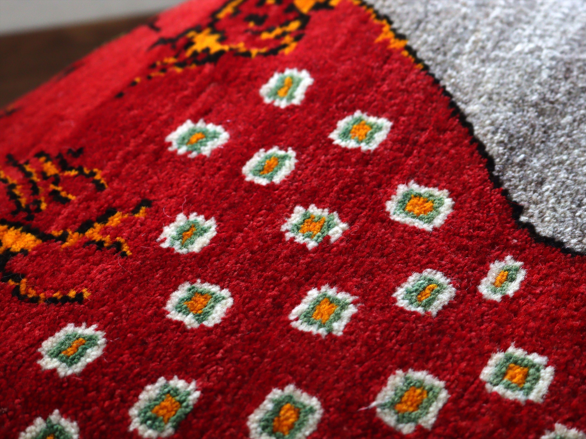 | 毛足は短くカットされてすっきりと滑らかな手触り。目立つダメージもなく、コンディションのよいピースです。 カシュカイ族の象徴とされるライオンのモチーフですが、実際にはすでに絶滅してしまったライオンの姿を想像しながら、織り継がれてきたといいます。オールドライオンギャッベは、もともと販売のためではなく遊牧民たちが自分たちでテント(または部屋)で使うために織られたもの。生活の中で使用されていたものもあれば大切に保管してあったものもあり、状態は様々です。 現在では、職業として絨毯やギャベを織ることがほとんどで、ライオンギャッベのように遊牧民ならではの自由なデザインで織るユニークなカーペットは、21世紀に入ってから出てくる数が少なくなっています。 ここ数年、ユニークなオールドギャッベはマーケットに出てくることが少なくなり、だんだんと希少性が増してきています。ご興味のある方は、手に入るうちにぜひ!! |