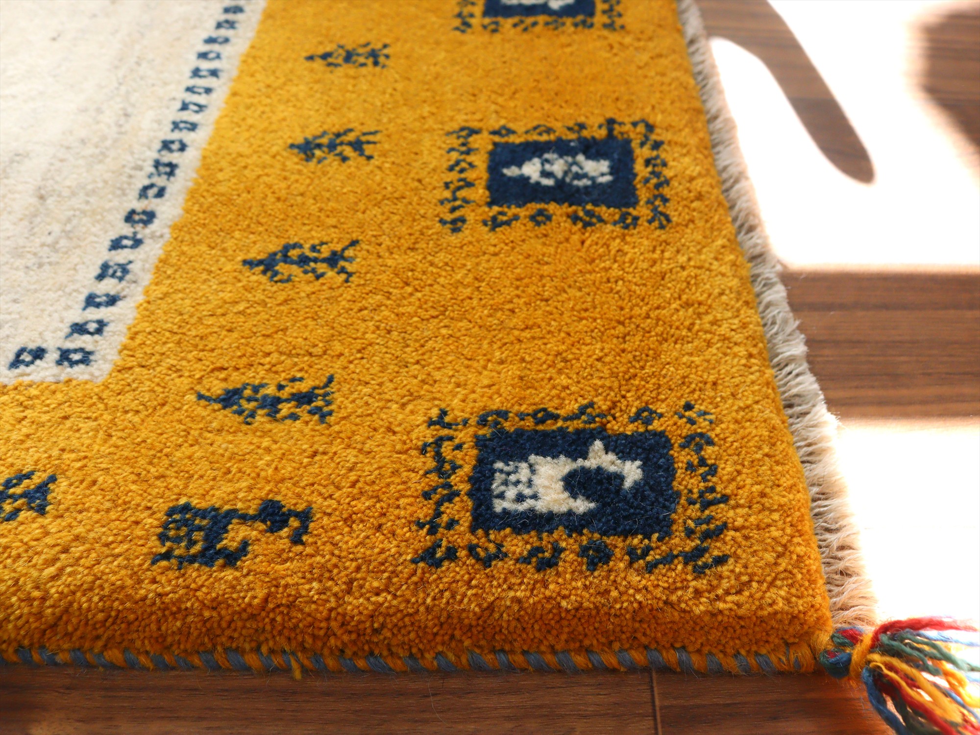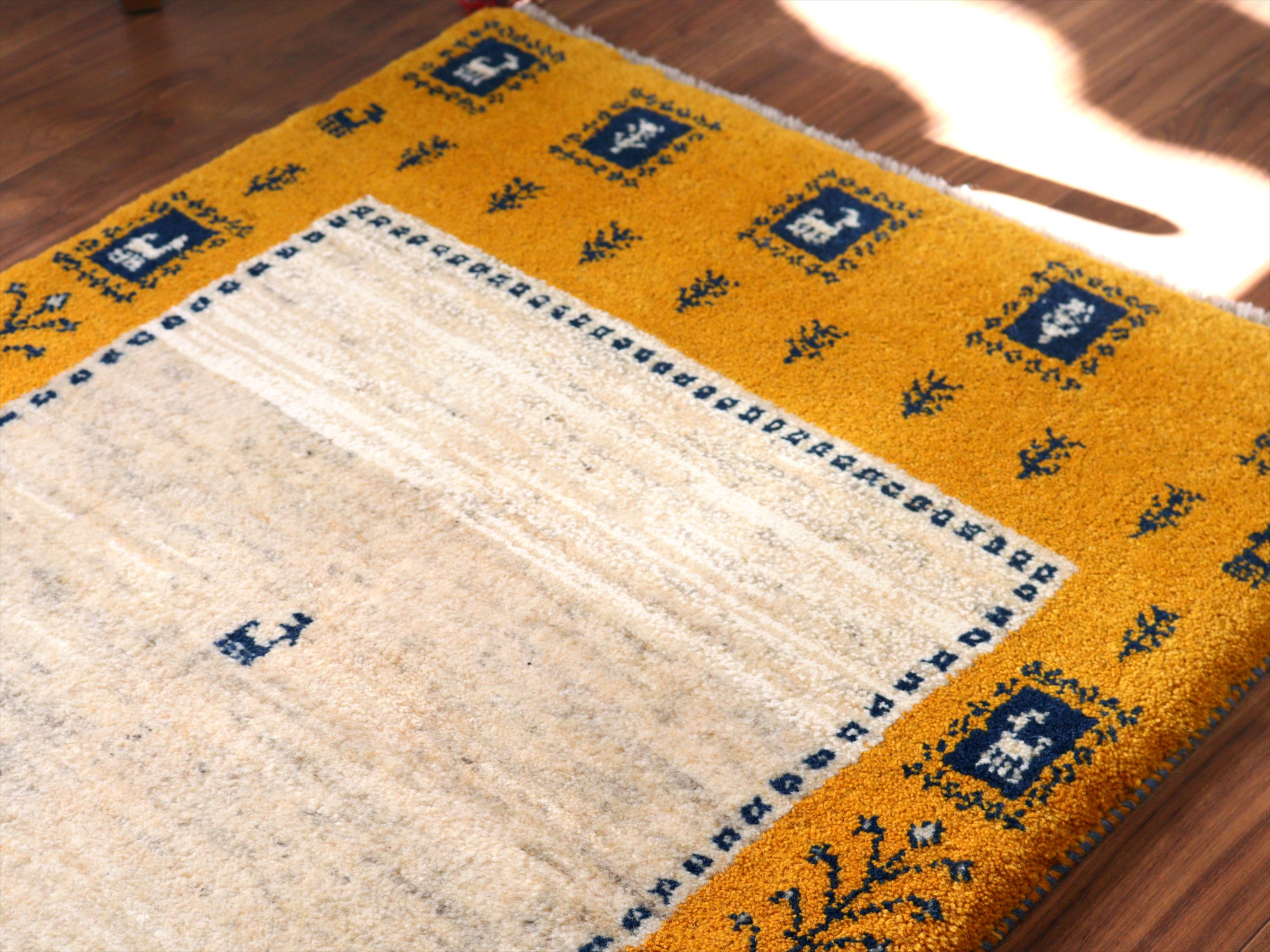 Key:ギャベ, ラグ, 手織り絨毯, 部族絨毯, 草木染, カシュカイ族, ウール製,センターラグ, イエロー, 黄色, 東京,中野区, ガラタバザール, Gabbeh, Tribal Rug, Hand knotted, wool, Natural dye, Shiraz, Fars, Quashkai