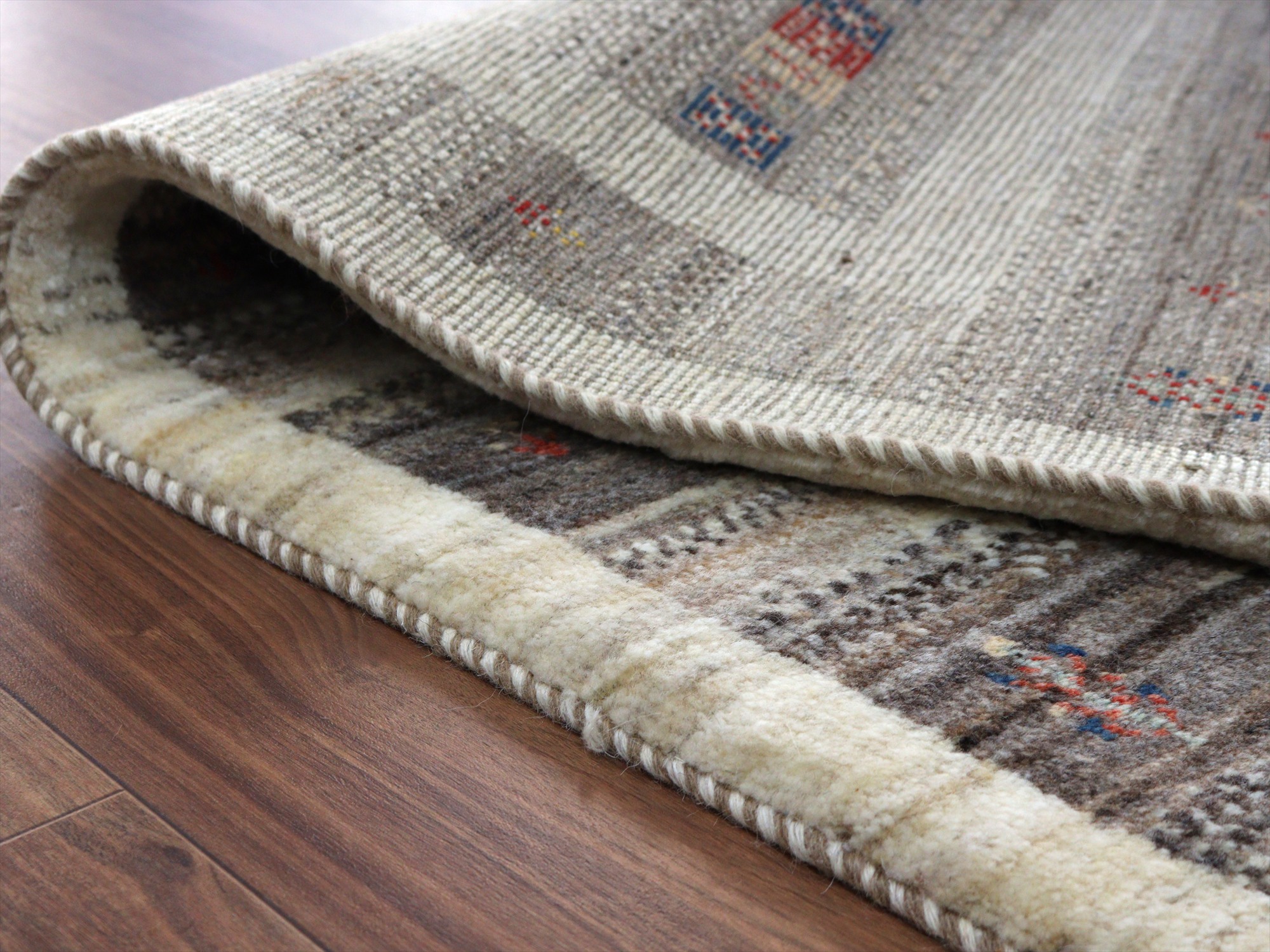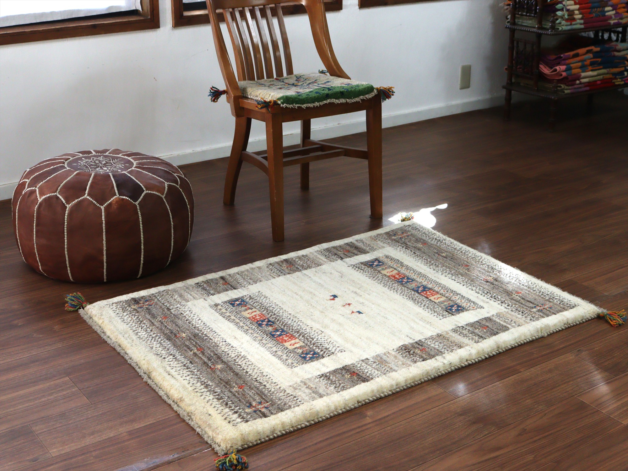 ギャッベ イランの手織りラグ 121x85cm グレー&アイボリー