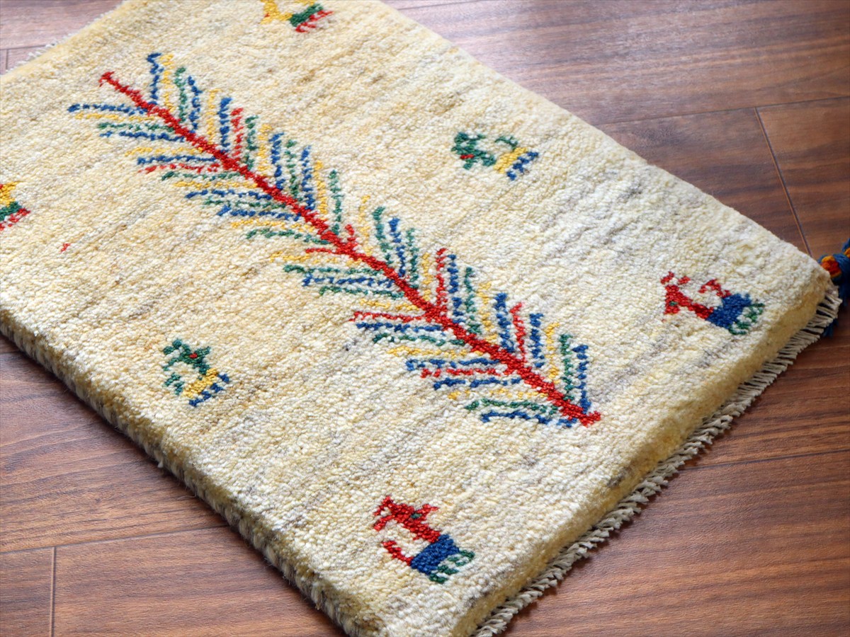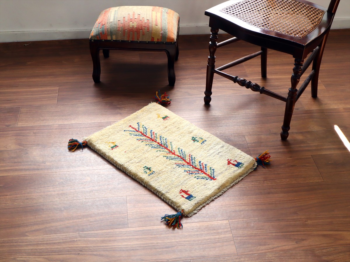 ギャッベ ミニギャベ イラン手織り 56×39cm ナチュラルアイボリー 連なる生命の樹と動物