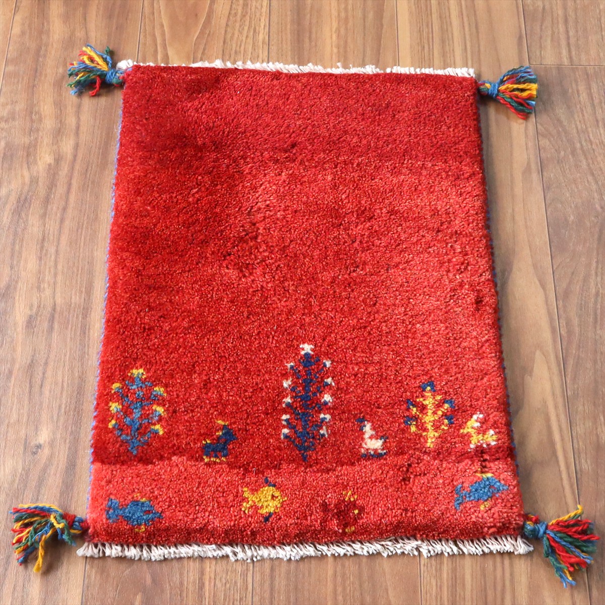 ギャッベ ミニギャベ イラン手織り 56×40cm レッド 生命の樹と動物と魚