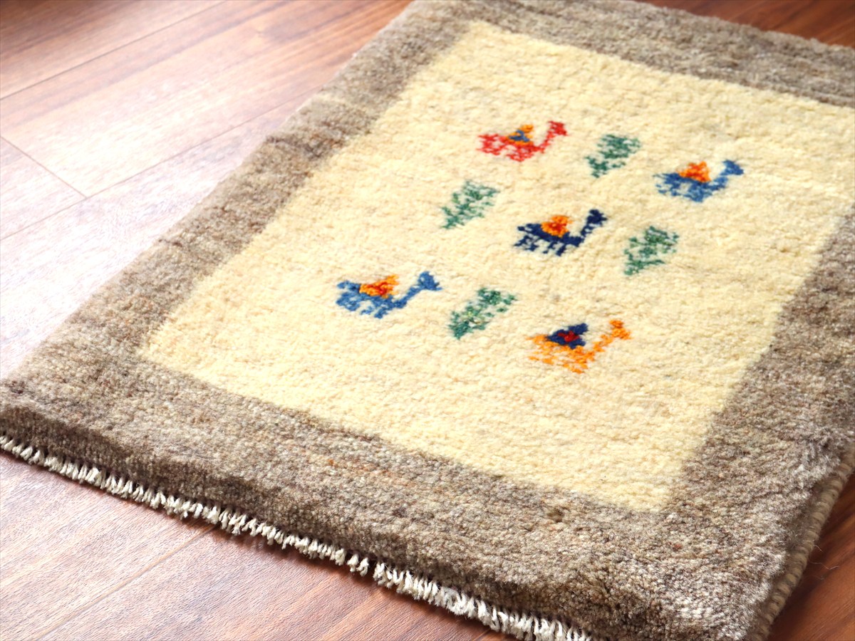 ギャッベ ミニギャベ イラン手織り 58×46cm ナチュラルアイボリー ラクダと生命の樹
